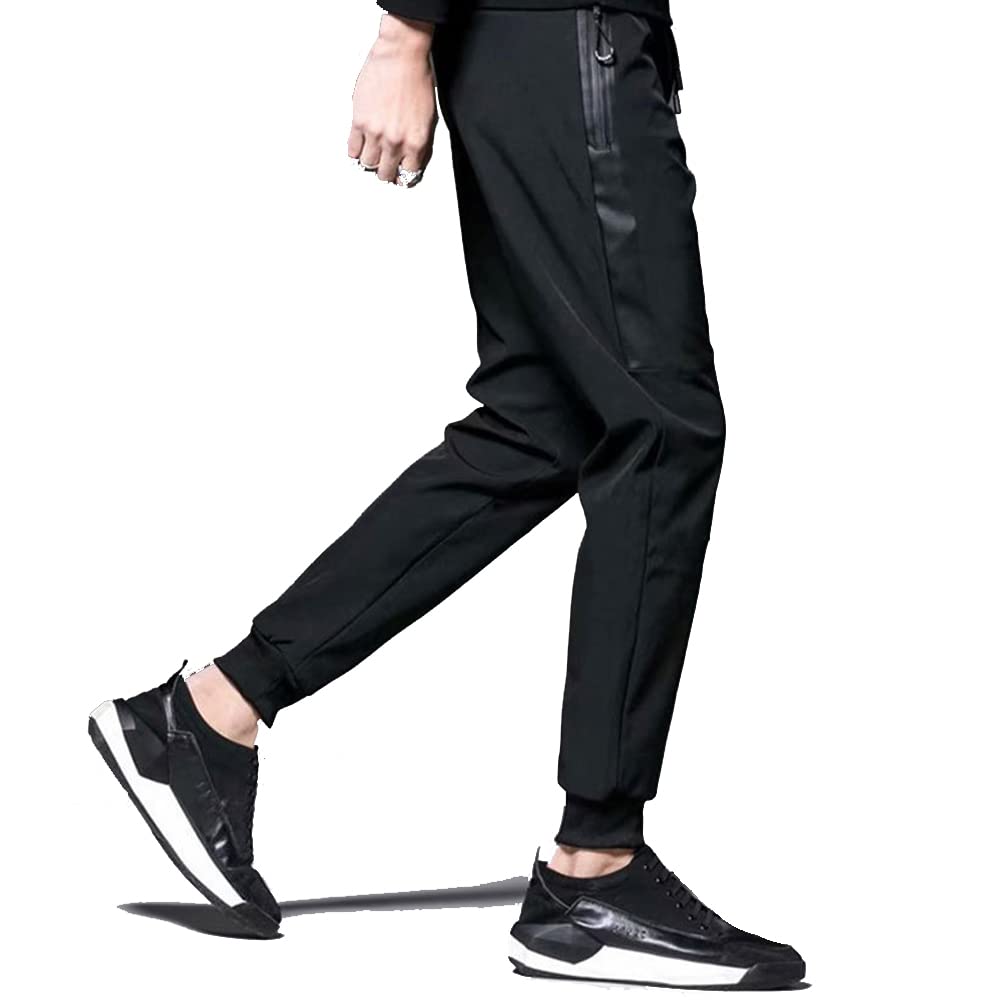 [AdLife] ジョガーパンツ トレーニング ジャージ 下 パンツ 夏 細身 スキニー ストレッチ メンズ スウェット 足首絞り ブラック
