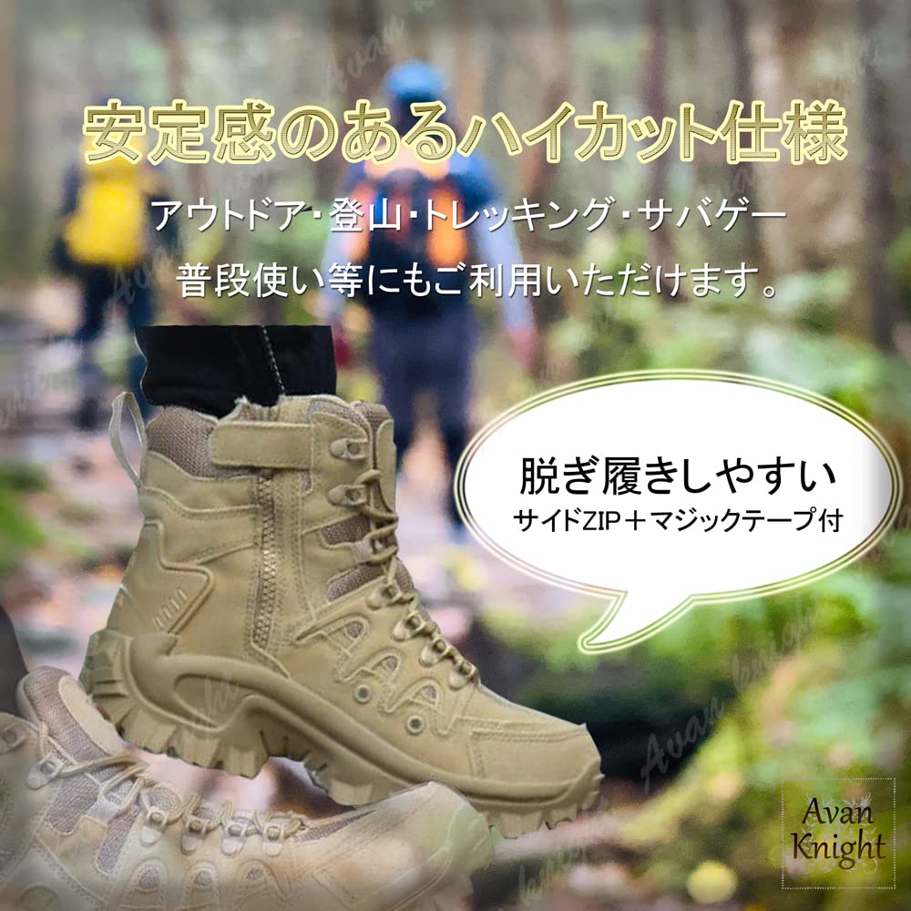 [Knightraid] [ナイトレイド] メンズ ミリタリー ブーツ アウトドア シューズ 登山 靴 ブーツ ブラック ブラウン ベージュ ハイキング シューズ サバイバル サバゲー ハイカット サイドジップ タイプ KR127