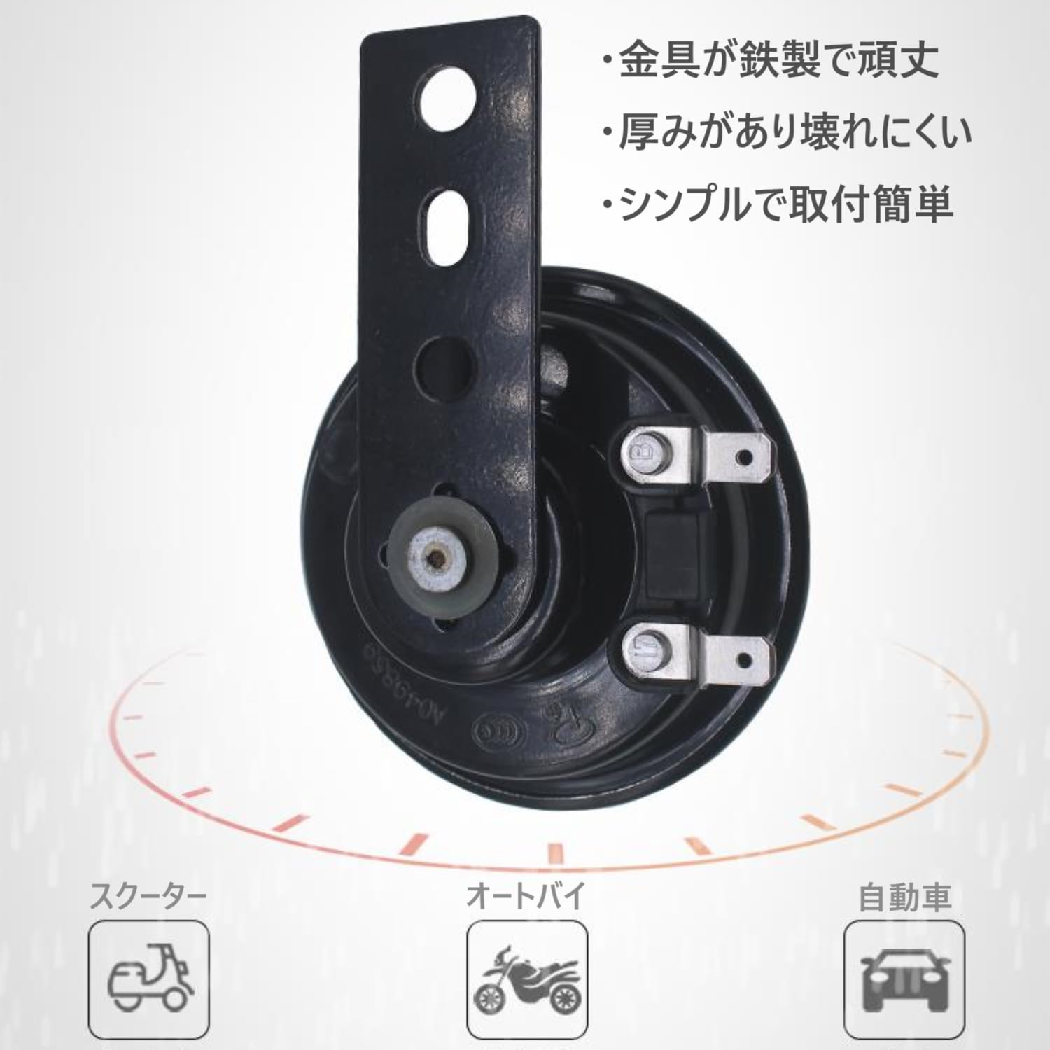 RIZES バイク ブラック 電動バイク バイク用品 12v メッキ ダブル ホーン 小型 トラック ステー オートバイ スクーター クラクション 汎用 1個
