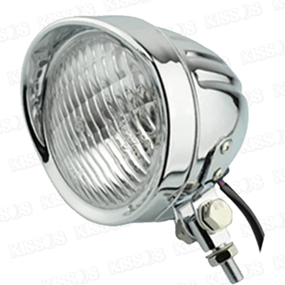 ボトムマウント式のバイザー付き4.5インチメッキ素材のベーツライトになります。バルブはH4を採用。夜道も明るく照らします。