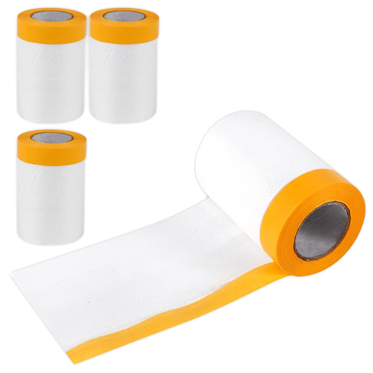 汚れ防止対策に:こちらのテープ付養生シート マスカーシートはマスキングテープの下に長尺幅の透明フィルムが付いている仕様になっておりますので、汚したくない場所を広範囲でカバーすることができます。リフォームやリノベーション、車の塗装、ペンキ塗装、室内清掃・クリーニング清掃、DIY、解体現場、板金、自動車整備工場などさまざまな場面でご使用いただけます。