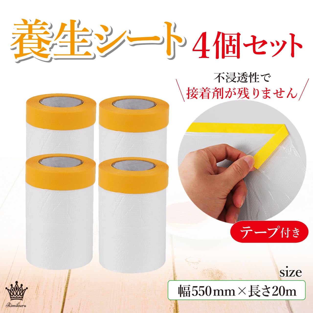Rimikuru 養生シート テープ付き 4個セット ロール 車 塗装 壁 養生テープ 養生 マスキング テープ ビニール (幅550mm×長さ20m)