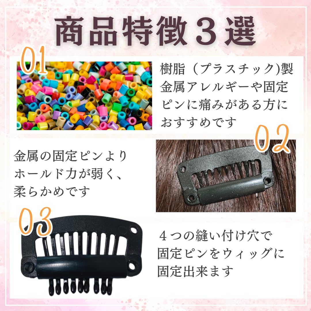 Luce brillare 固定ピン 3個セット プラスチック 樹脂 非金属 かつら用ピン ヘアクリップ ウィッグ用固定ピン ワンタッチピン ウィッグクリップ 補修用 エクステ用 ウィッグケア用品 ヘアピン 留め具 固定金具 痛くない 金属アレルギー 検査 医療 ルスブリラーレ (プラスチック製 (3個セット))