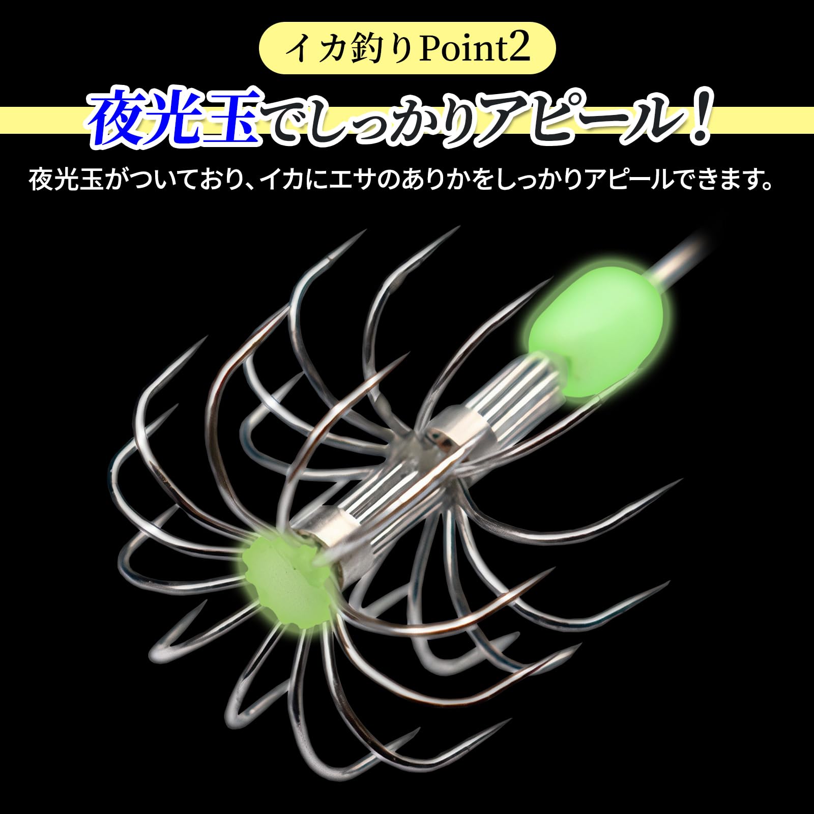 ?夜光玉が付いており、イカにエサのありかをしっかりアピールできます。