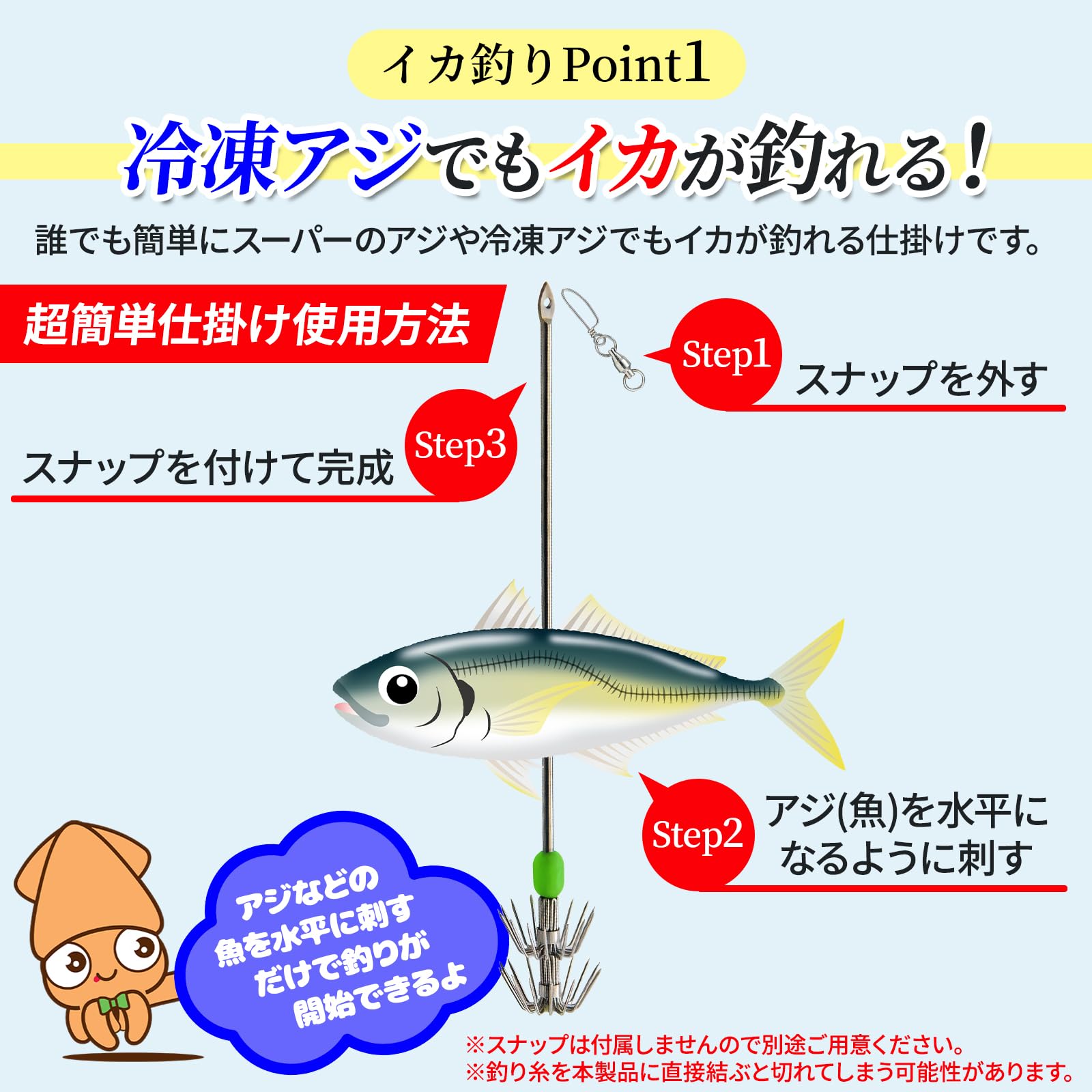 【新着商品】Morisho イカフック イカ ヤエン 釣り 仕掛け 冷凍アジ 餌 エサ エギ 夜光玉 ステンレス 返し アオリ 初心者 簡単