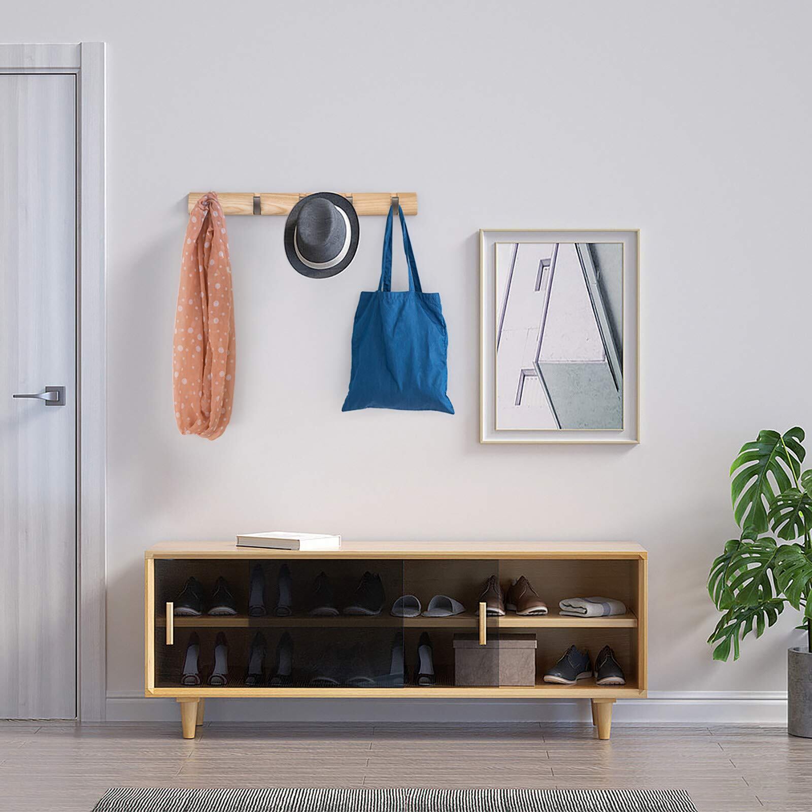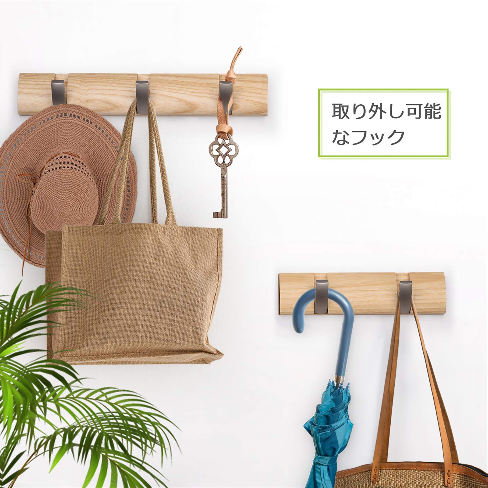 Love-KANKEI 壁掛けフック ウォールハンガー 整理整頓 アッシュウッド アルミ 収納フック 帽子掛け 洋服掛け コート掛け 2連+3連=5連 省スペース