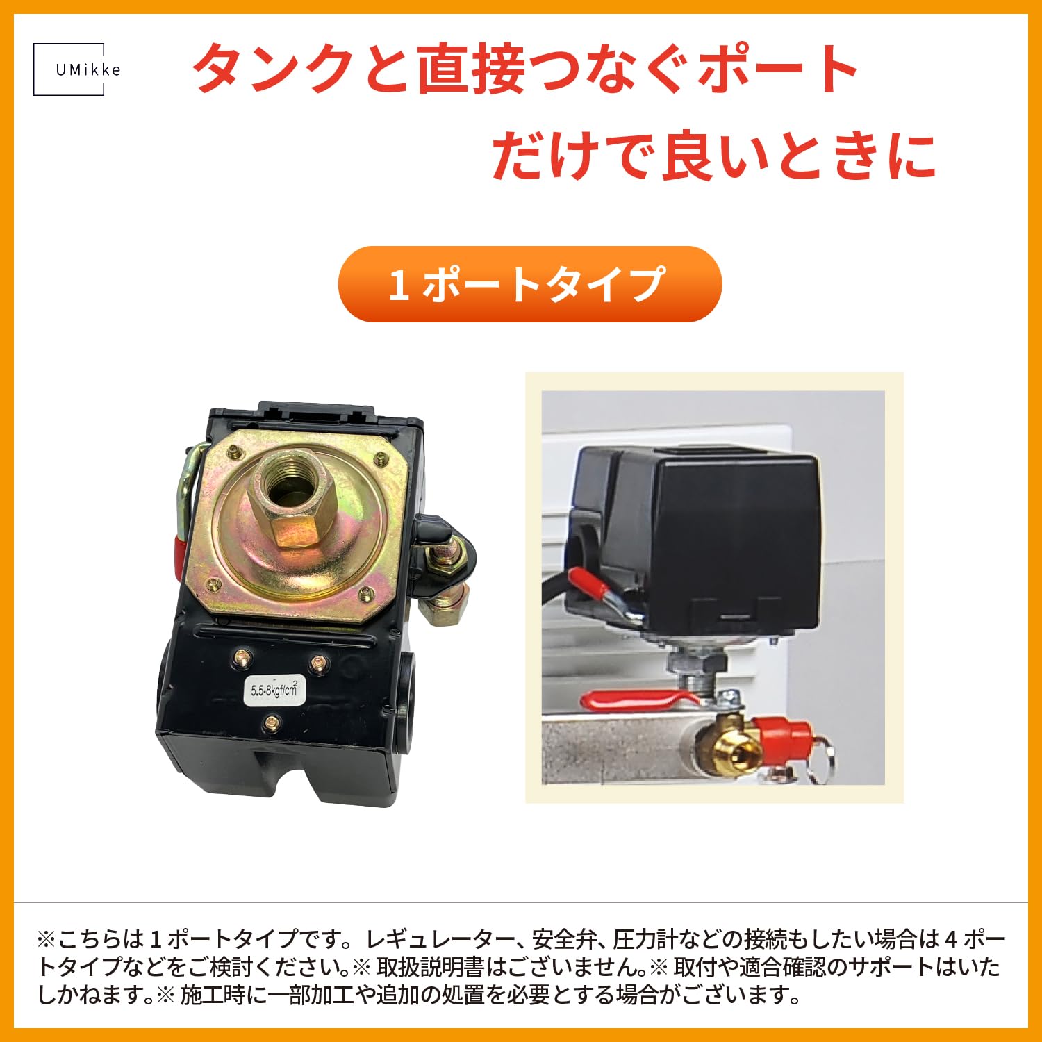 UMikke エアーコンプレッサー 圧力スイッチ 1ポート 汎用 交換用 初期値 5.5 〜 8.0 kgf/? (約 0.55 〜 0.8 MPa) 1個