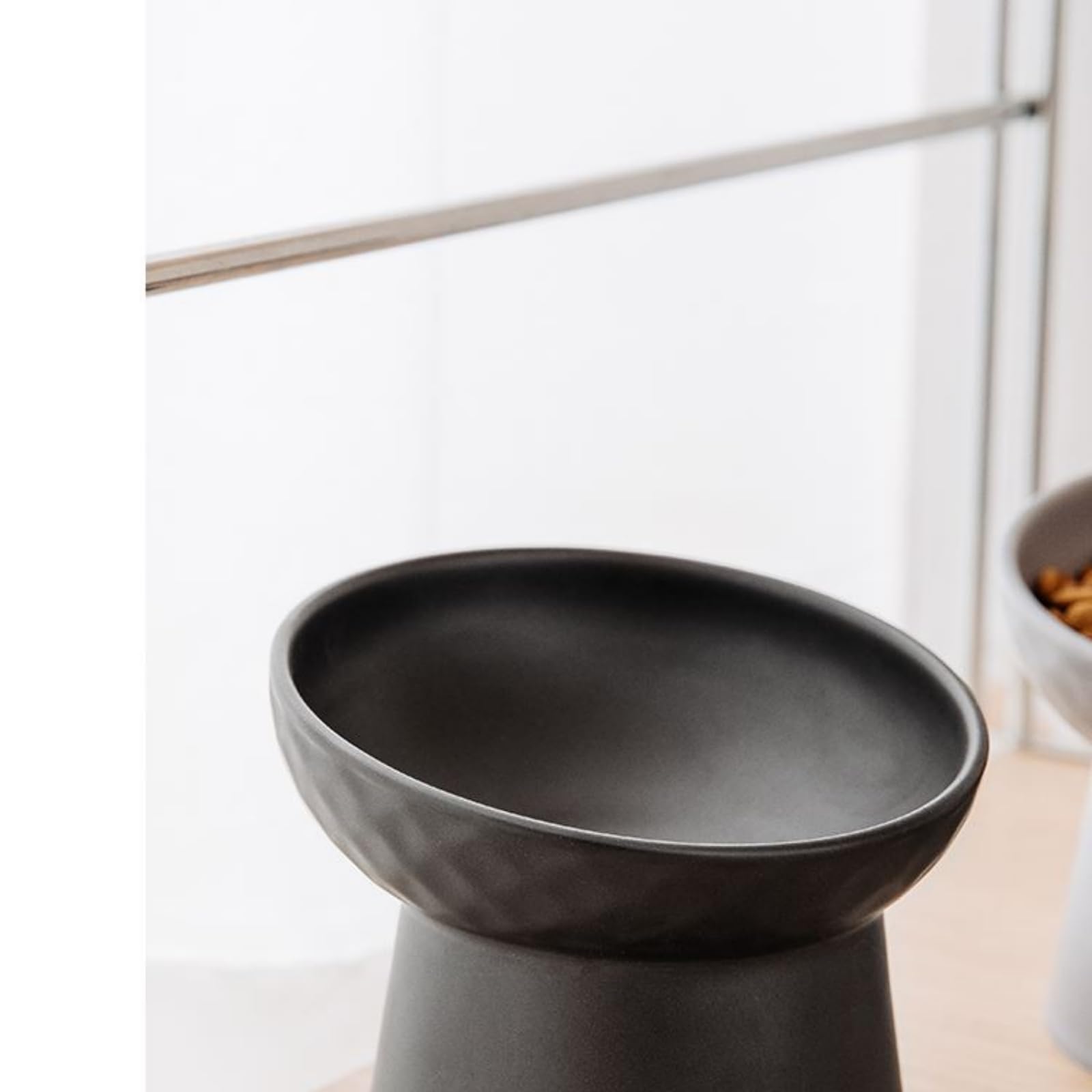 L'andFree 猫 餌入れ 餌皿 ご飯皿 水飲み皿 食器 フードボウル 陶器 犬 フードボウル 犬 えさ入れ 15度の傾斜 電子レンジ 食器洗浄機対応(ブラック)