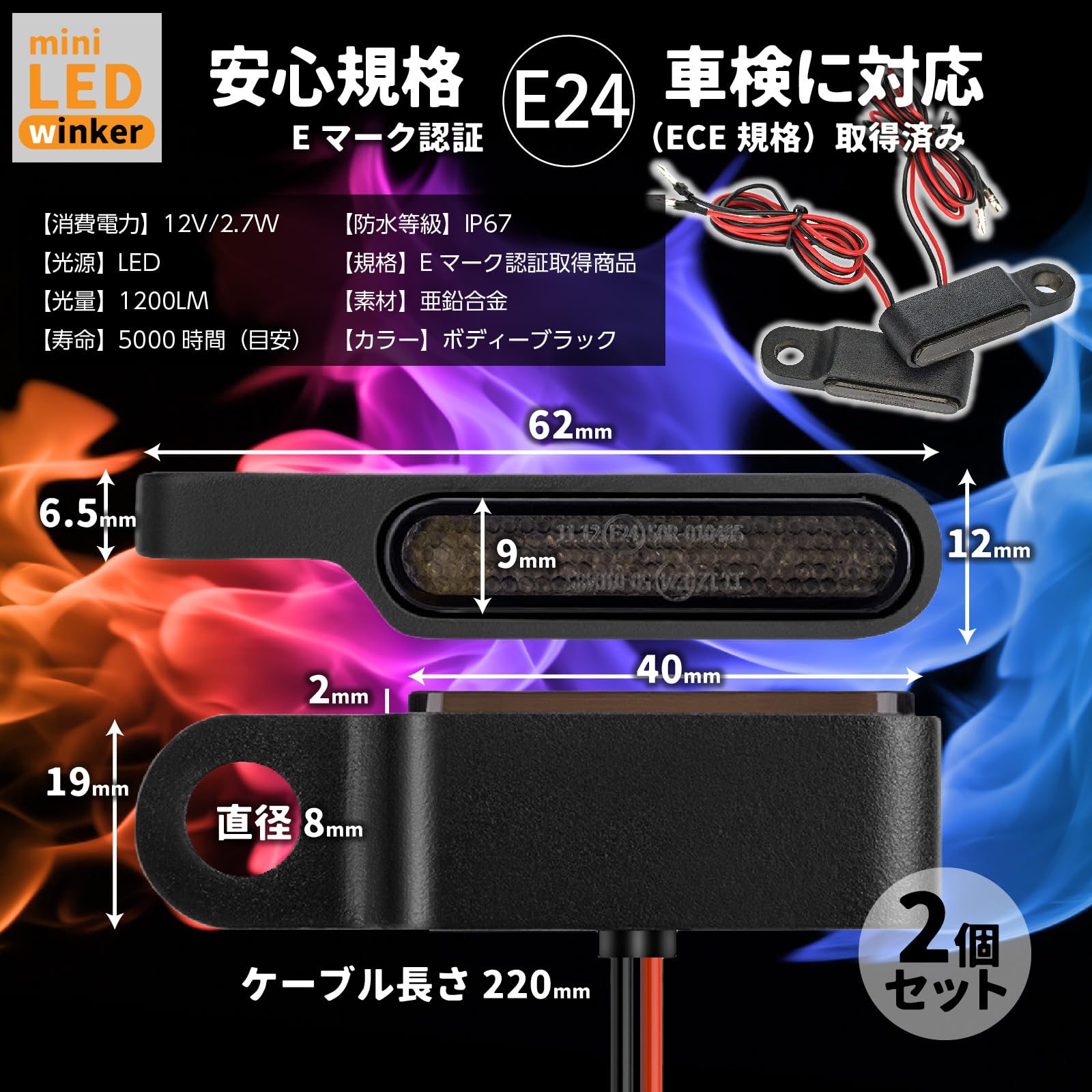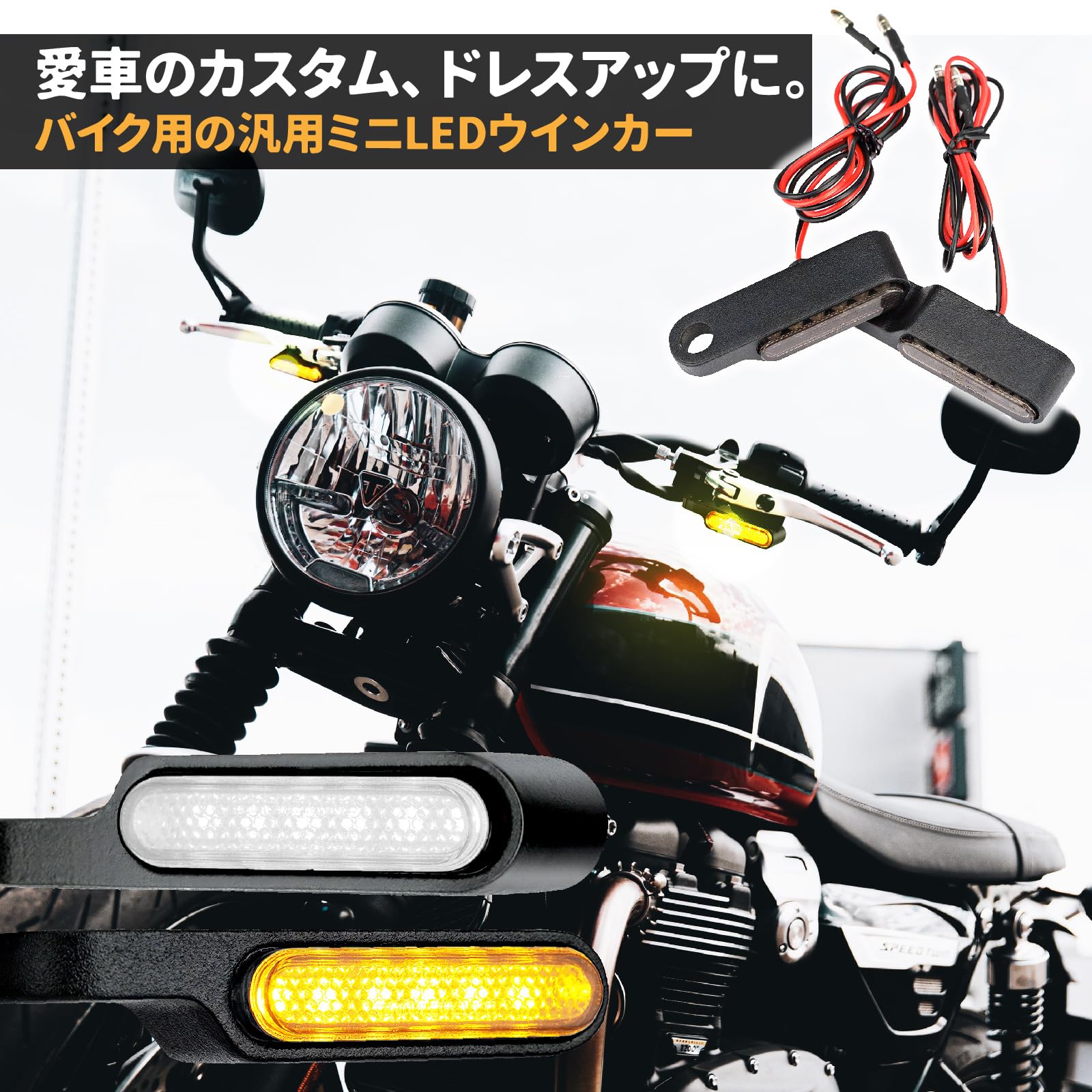 バイク用の汎用ミニLEDウインカーは、汎用性の高いシーケンシャルウィンカーで流れるライトがかっこいい!愛車のカスタム、ドレスアップに。防水等級IP67の優れた防水性で雨の日の運転にも。Eマーク認証付きで車検も対応。2個セット、4個セット(1台分)