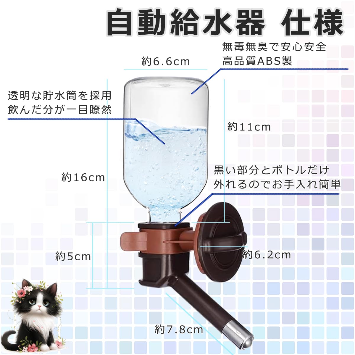 LovesPet 軽量 自動給水 ペットボトル 水漏れ軽減機能付 ゲージ かんたん取付 清潔 ペット用品 犬猫 ウォーターノズル 小動物にも対応