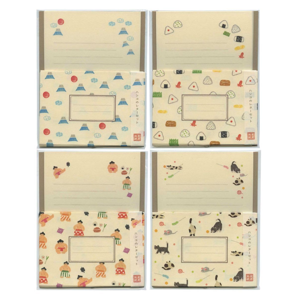 ハンコをおしたようなかわいい柄の美濃和紙で出来たレターセット。