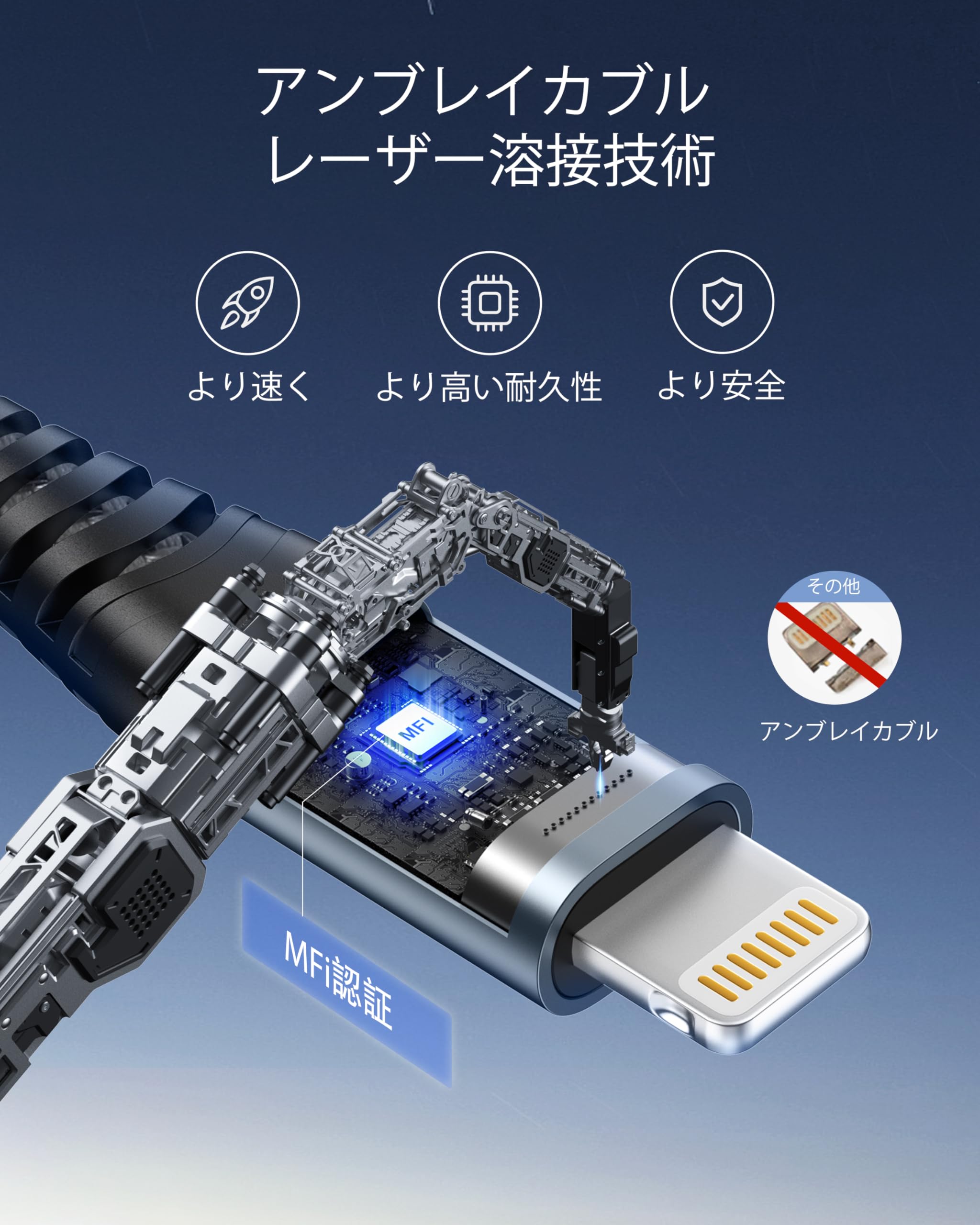 【Apple Mfi認証 iPhone 充電ケーブル】iPhone 充電ケーブルType-C AppleオリジナルのC94端子とスマートチップを使用して、Appleデバイスを即座に認識し接続。アップルデバイスへの完璧な互換性を満たしている性能であると共に、安心して長い間ご使用いただけます。