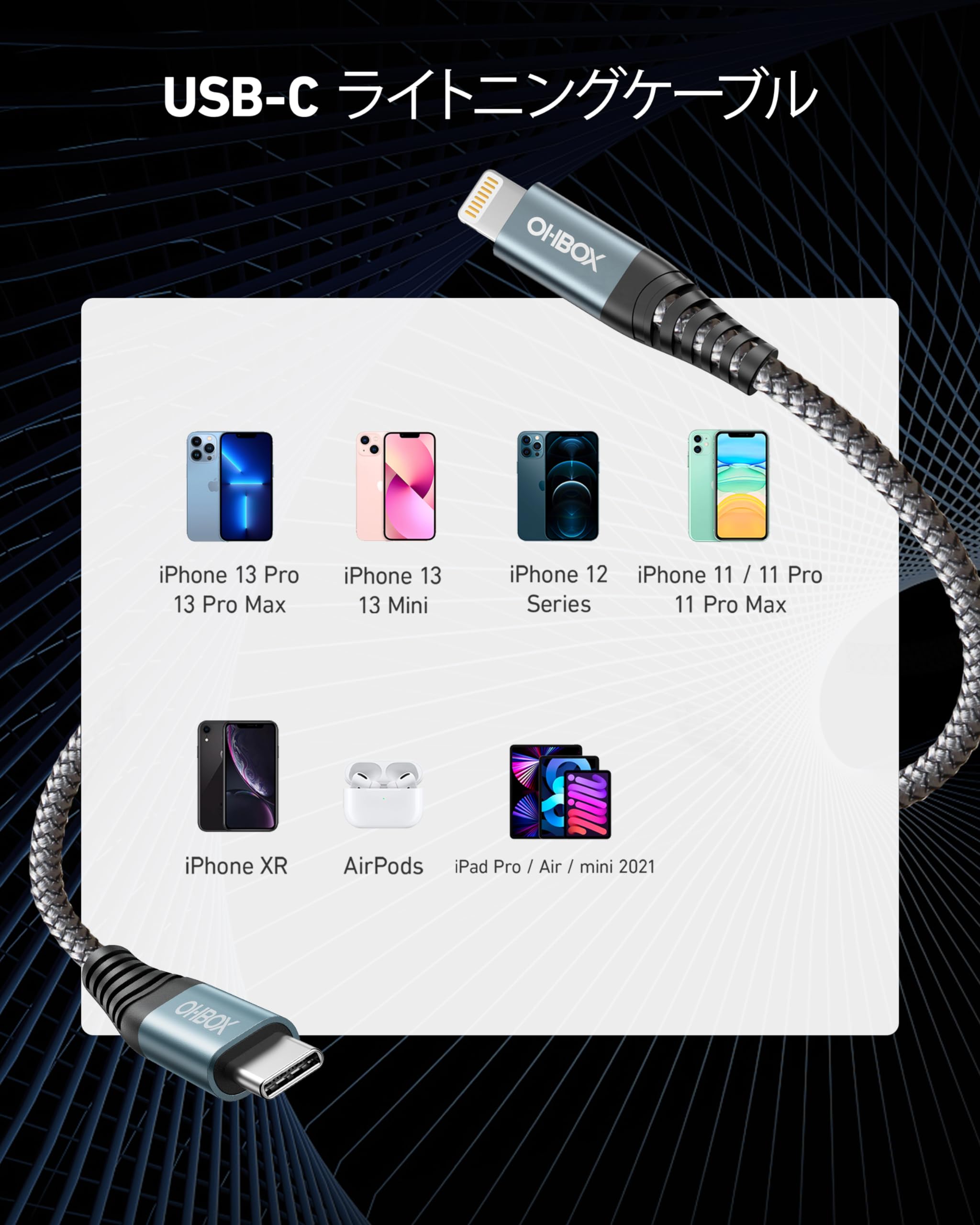 【高い互換性】USB C ライトニングケーブル 2m PD対応 iPhone 14、13 13 Mini、13 Pro、13 Pro Max iPhone 12、12 Mini、12 Pro、12 Pro Max、11、11 Pro、 11 Pro Max、SE、X、XS、XR、XS Max、8、8 Plus ;iPad 8th iPad 2020 / iPad Pro 12.9 gen1 / iPad Pro 12.9 gen2 / iPad Pro 10.5 / iPad Air3 10.5 / iPad mini5 7.9 AirPods 等【ご注意:USB-C充電器と合わせて使われる必要があります。】