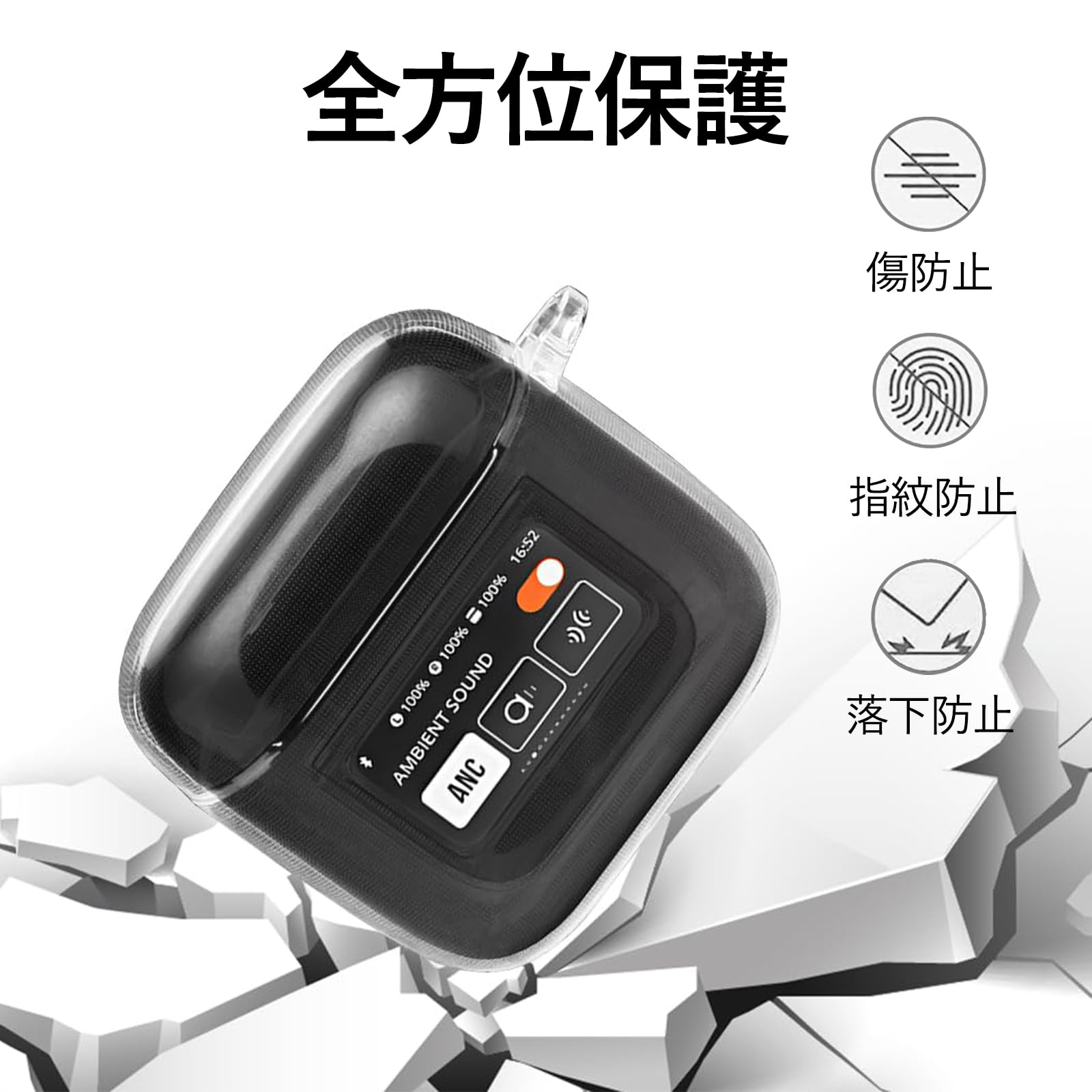 【JBL TOUR PRO 2の専用保護フィルム付き】ケースに貼るだけで、キズやホコリから永遠サヨナラ、しっかりガードしてくれます!!!水滴が玉のように弾くほどの撥水・加工がされ、指紋や汚れなど付きにくく、拭けばすぐに綺麗になり、いつでも画面がツルツルの状態で操作できます。カラビナが付いて、ベルトループやカバンに付けることが。JBL TOUR PRO 2 を落とす不安や紛失の悩みを解消できます。