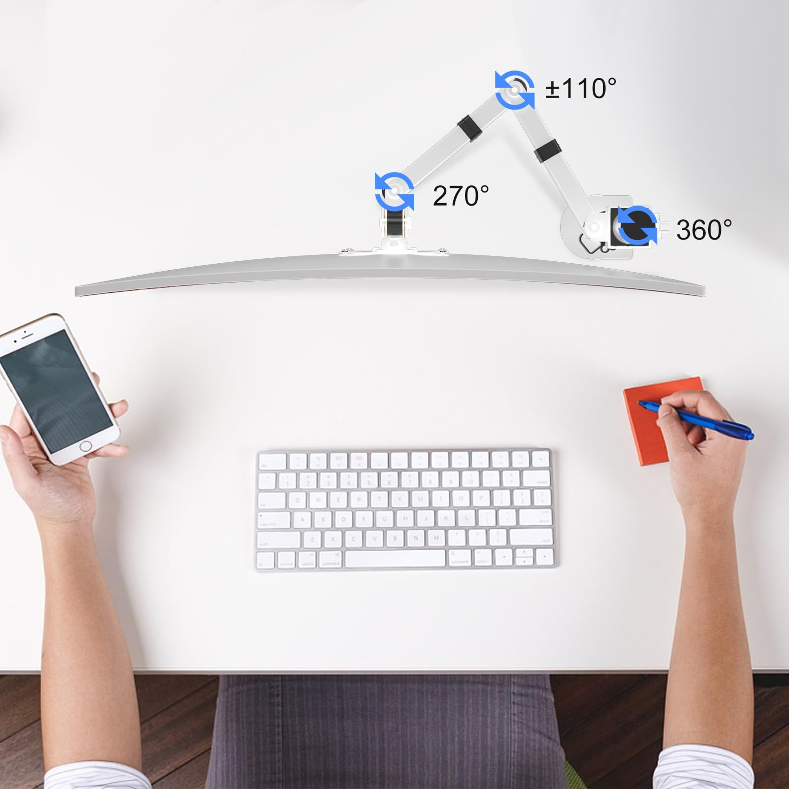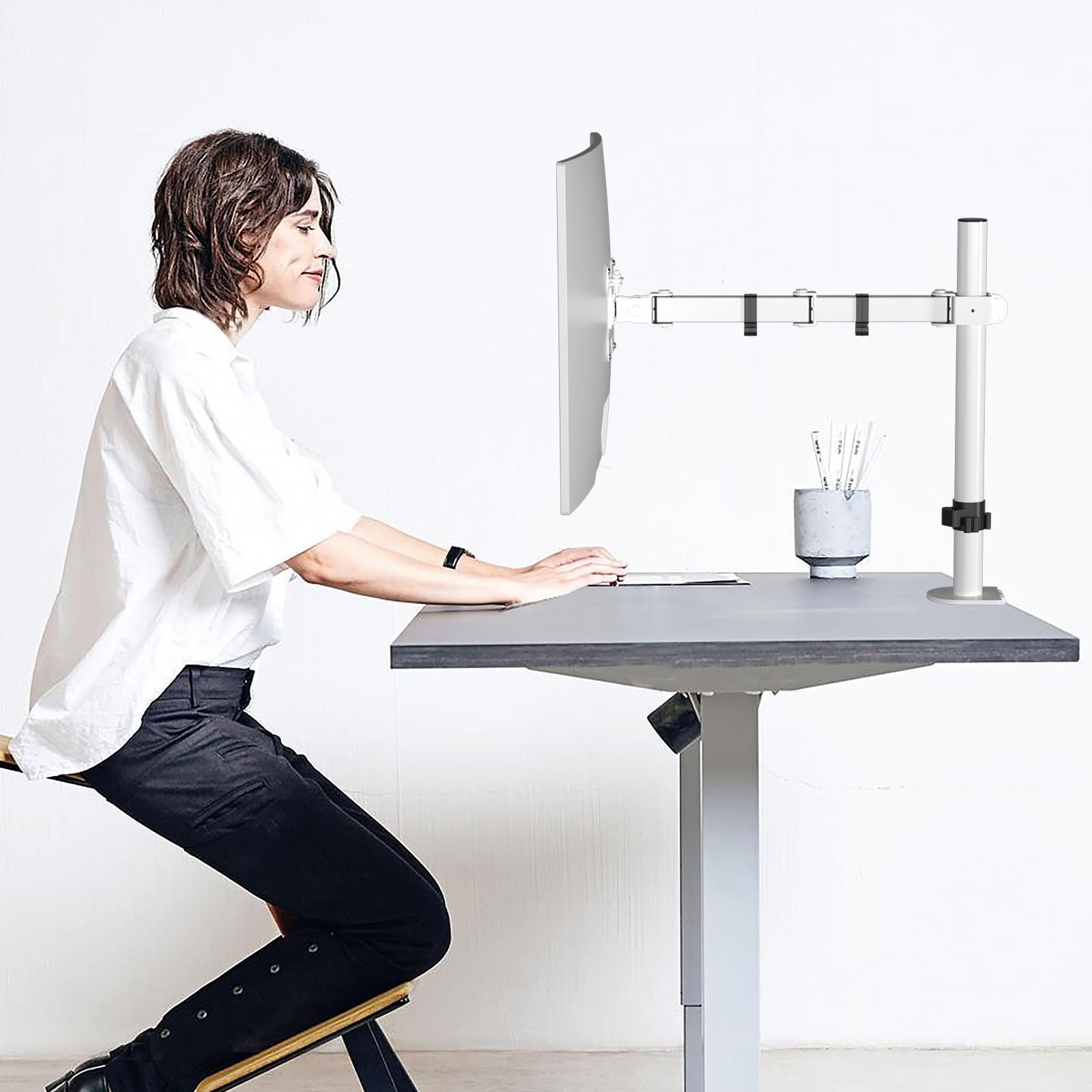【猫背対策】こんなお悩みありませんか?モニター位置が低く、姿勢が悪く、肩こりや腰痛が起こる?このモニターアームはいろんな角度を調整できて自由度は高いです。さらに、立てで仕事もできます。角度や距離などが自分に合わせるにして、背や首の疲れをリラックスします。活動範囲が広くて便利です。どんな姿勢でも液晶画面が見れて、目の疲れを軽減でき、作業効率が上がります。