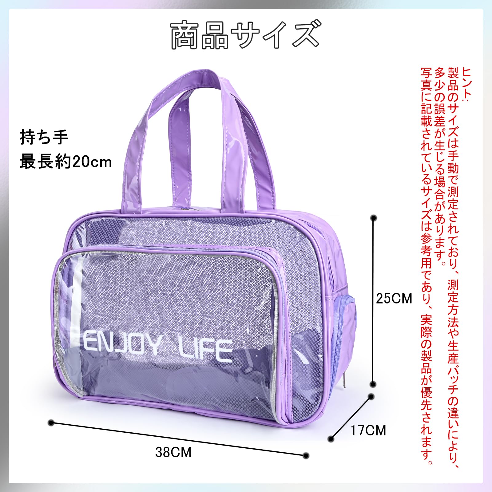 【高品質手提げバッグ】高品質のPVC生地で作られており、丈夫で耐久性があります。持ち手がついていて、持ち運びに便利です。透明なデザインで中身もしっかり確認出来て使い勝手のいいスパバッグです。