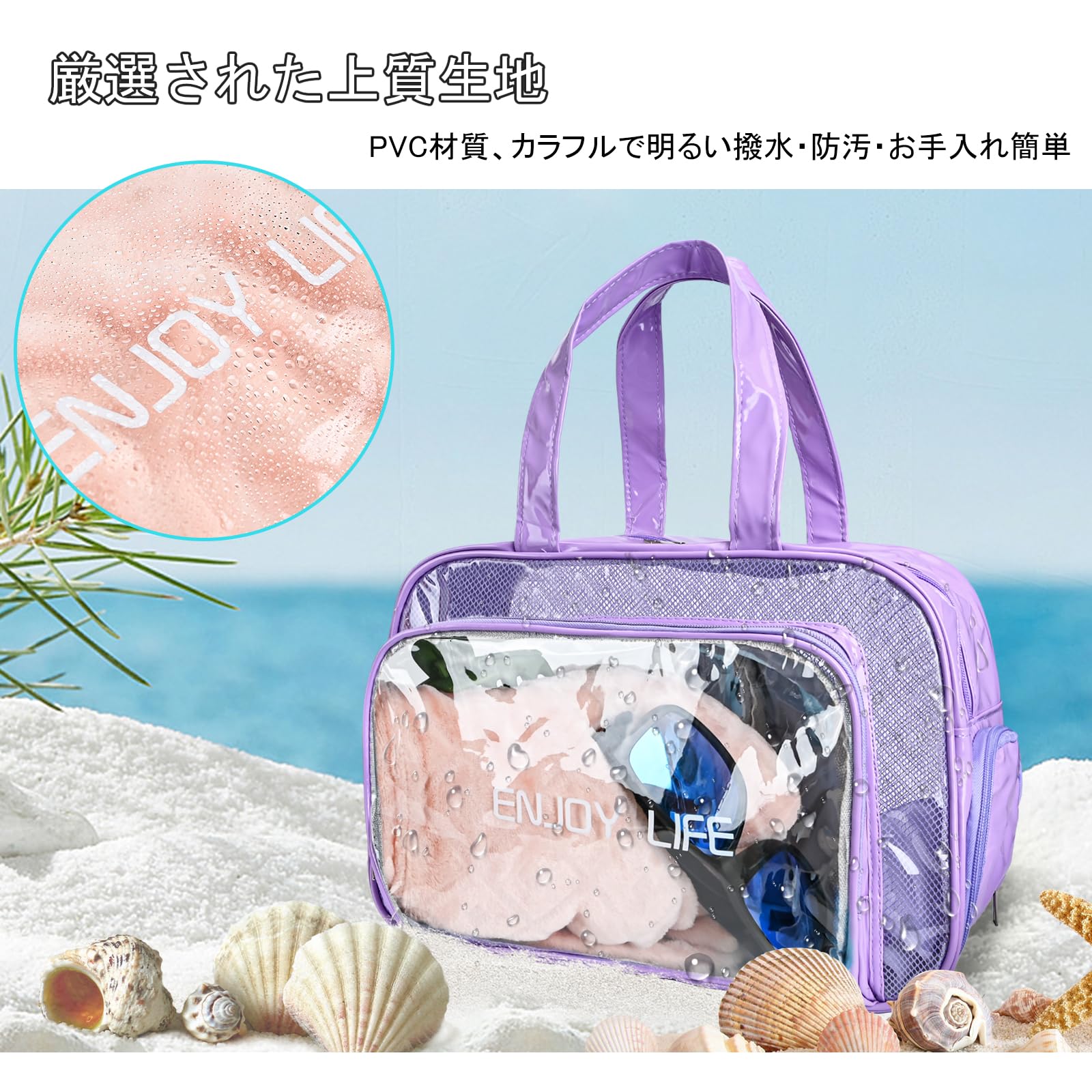 Newseego プールバッグ PVC防水素材 ビニール スパ ジム トラベル キャリーオン 女の子 手提げ 丈夫 小さい 大容量 軽量 ビーチ/水泳/温泉/砂場/旅行用 スイミング