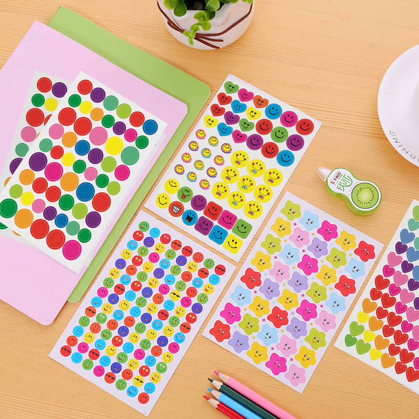 【人気商品】EUSTACE ごほうびシール 大容量 【2750ピース】 ニコニコ表情円形シール 星 ステッカー かわいい ハート シール カラフル 円 教師褒美用意シール 学童用ステッカー