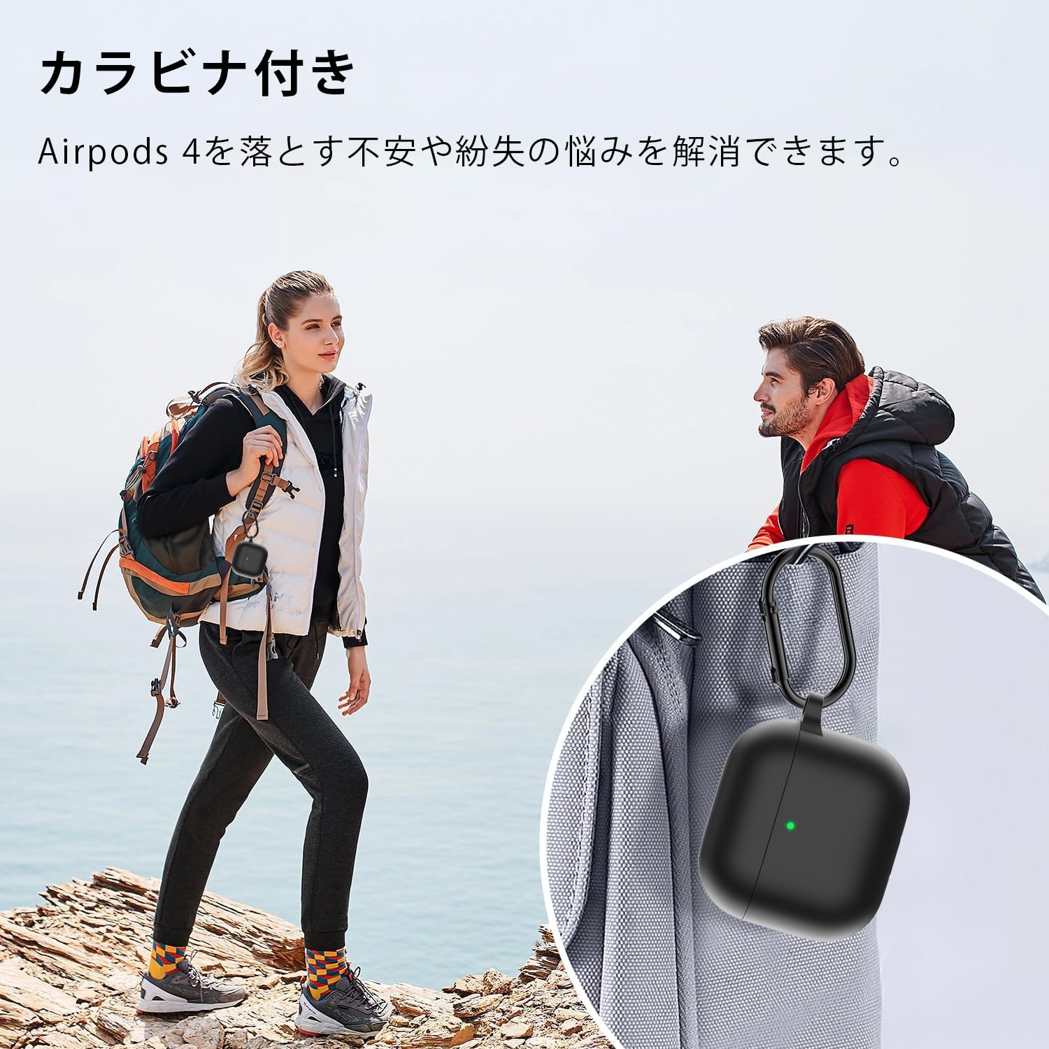 【在庫セール】LAYJOY AirPods4 用 ケース AirPods 第4世代 カバー シリコーンケース AirPods 4 ケース保護カバー 装着充電可能 全面保護 落下防止 キズ防止 耐衝撃 防塵 防水 軽量 収納 カラビナ付き (ブラック)