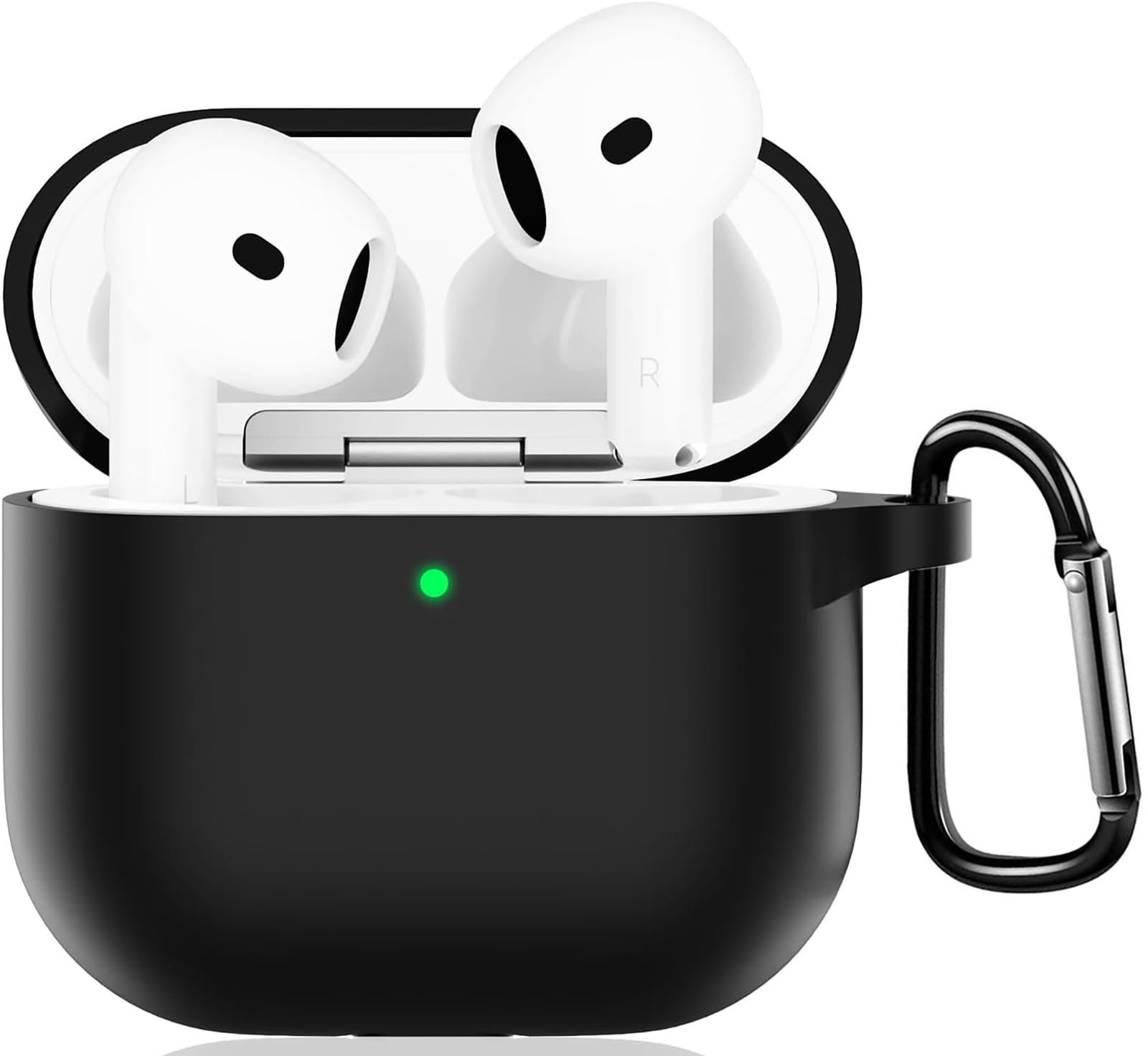 LAYJOY AirPods4 用 ケース AirPods 第4世代 カバー シリコーンケース AirPods 4 ケース保護カバー 装着充電可能 全面保護 落下防止 キズ防止 耐衝撃 防塵 防水 軽量 収納 カラビナ付き (ブラック)