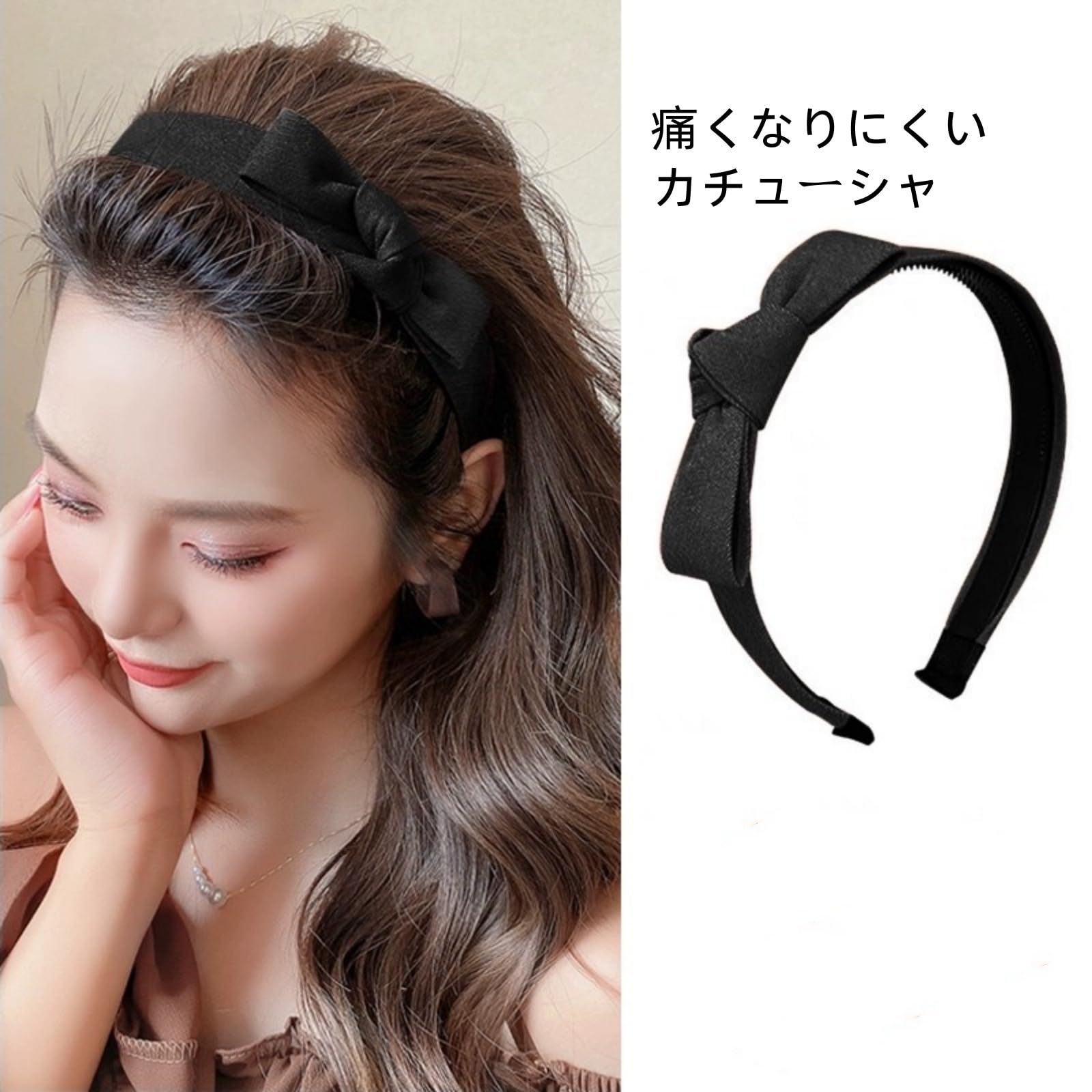 KISARG カチューシャ アクセサリー 髪留め ヘアバンド ジュエリー おしゃれ 大人 レディース 幅広 リボン シンプル 大きめ 痛くない 無地 ブラック