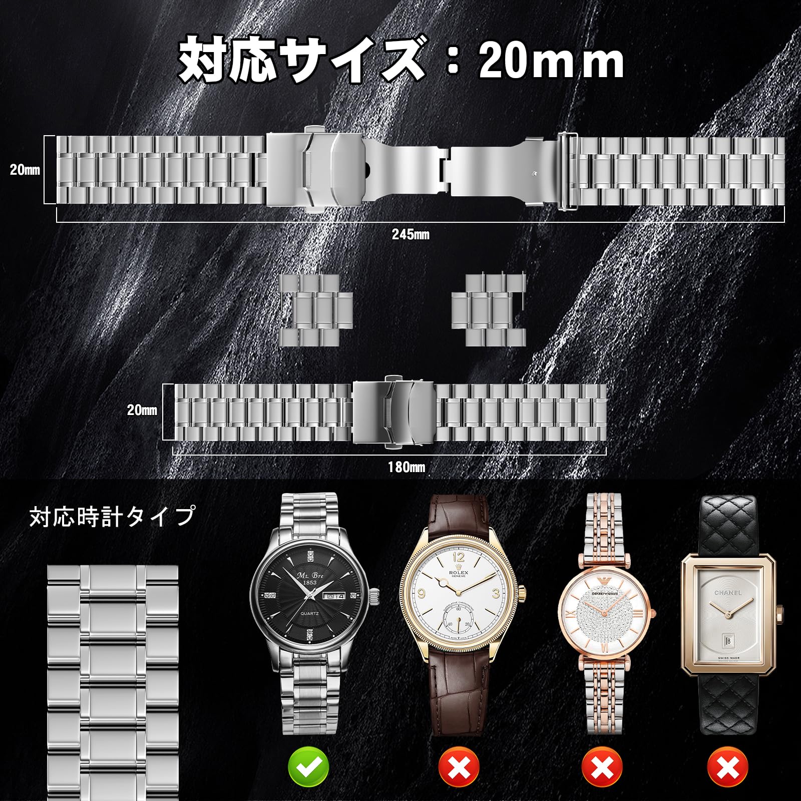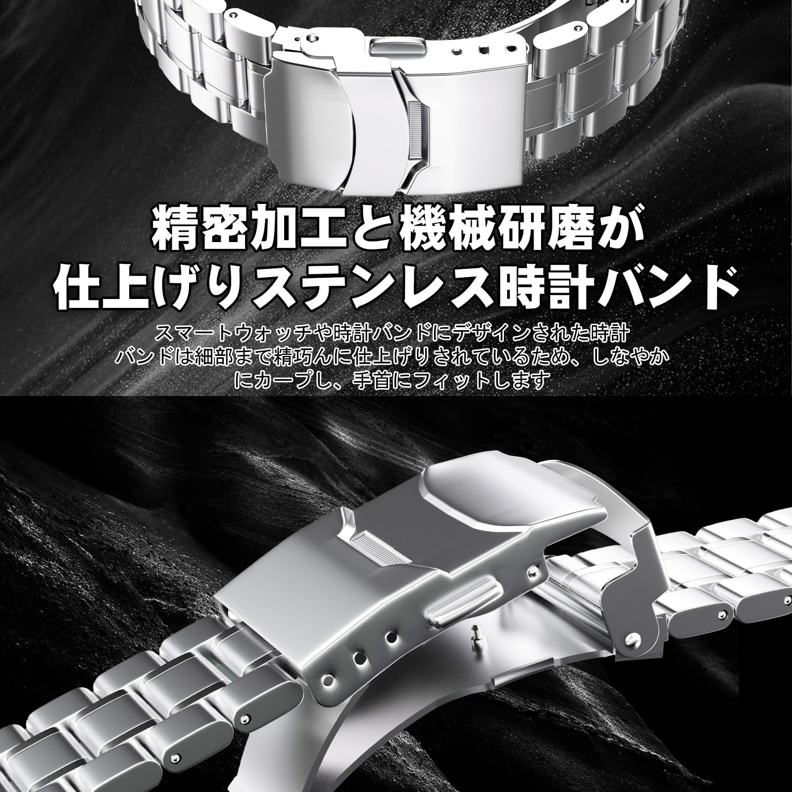 [GOHHME] 時計バンド ステンレス鋼 20ミリ 22ミリ 時計ベルト 20mm 22mm メタルベルト Quick Release スマートウォッチバンド ベルト 腕時計バンド 20mm 22mm 交換ベルト 金属ベルト 調整工具付き 通気性 調整簡単 ギフト