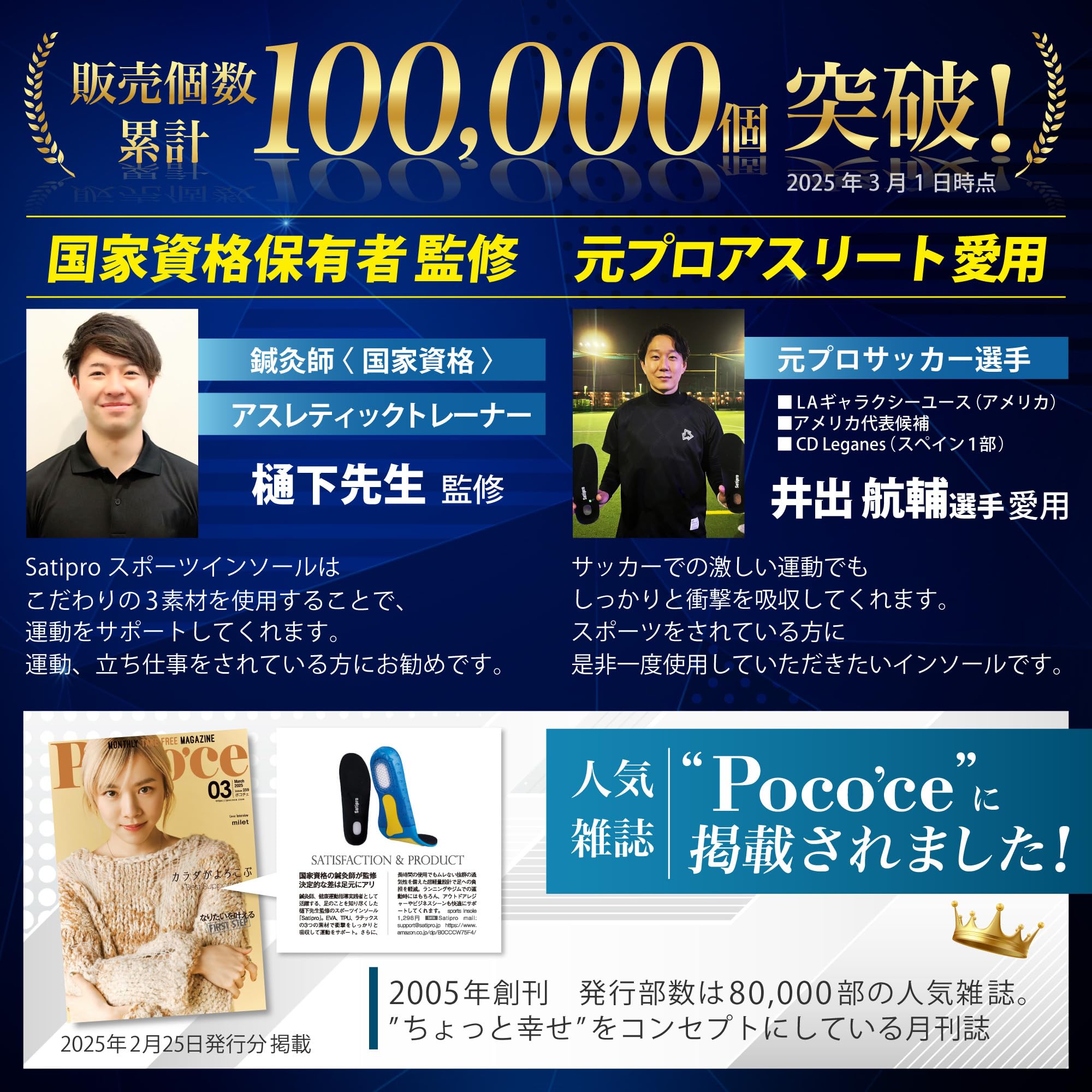 【トレーナー・鍼灸師監修/スポーツインソール】国家資格である鍼灸師で、アスレティックトレーナーでもある樋下先生監修。「Satiproスポーツインソール使うことで、足への衝撃を吸収します。スポーツをされている方や、立ち仕事の方にぜひお使いいただきたいです」