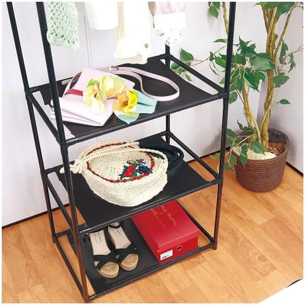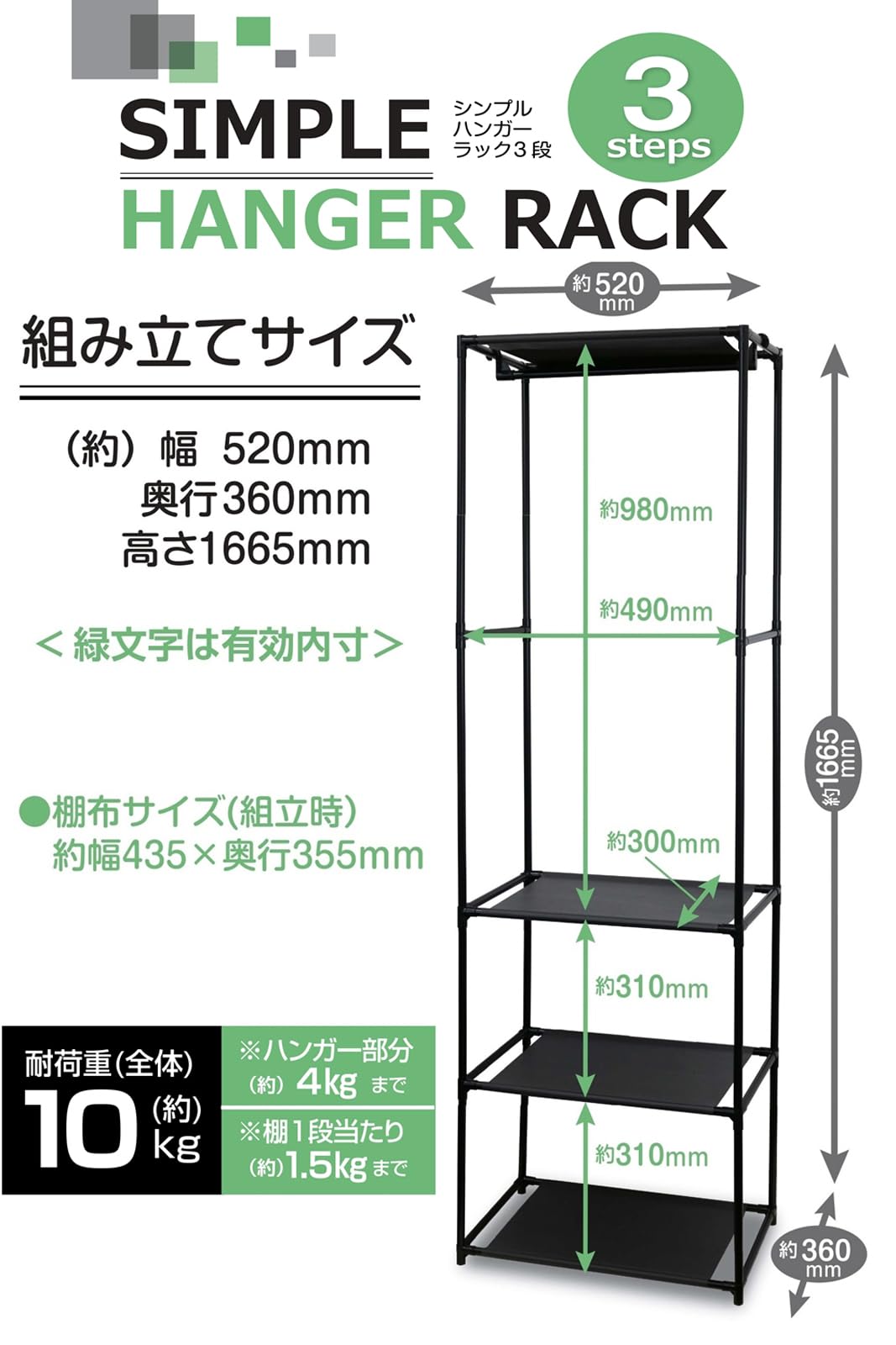 トレードワン(TRADE ONE) ハンガーラック 3段 幅52cm×奥行36×高さ166.5cm 耐荷重10kg 棚板付き 組立簡単 軽量 大容量 ブラック 30694