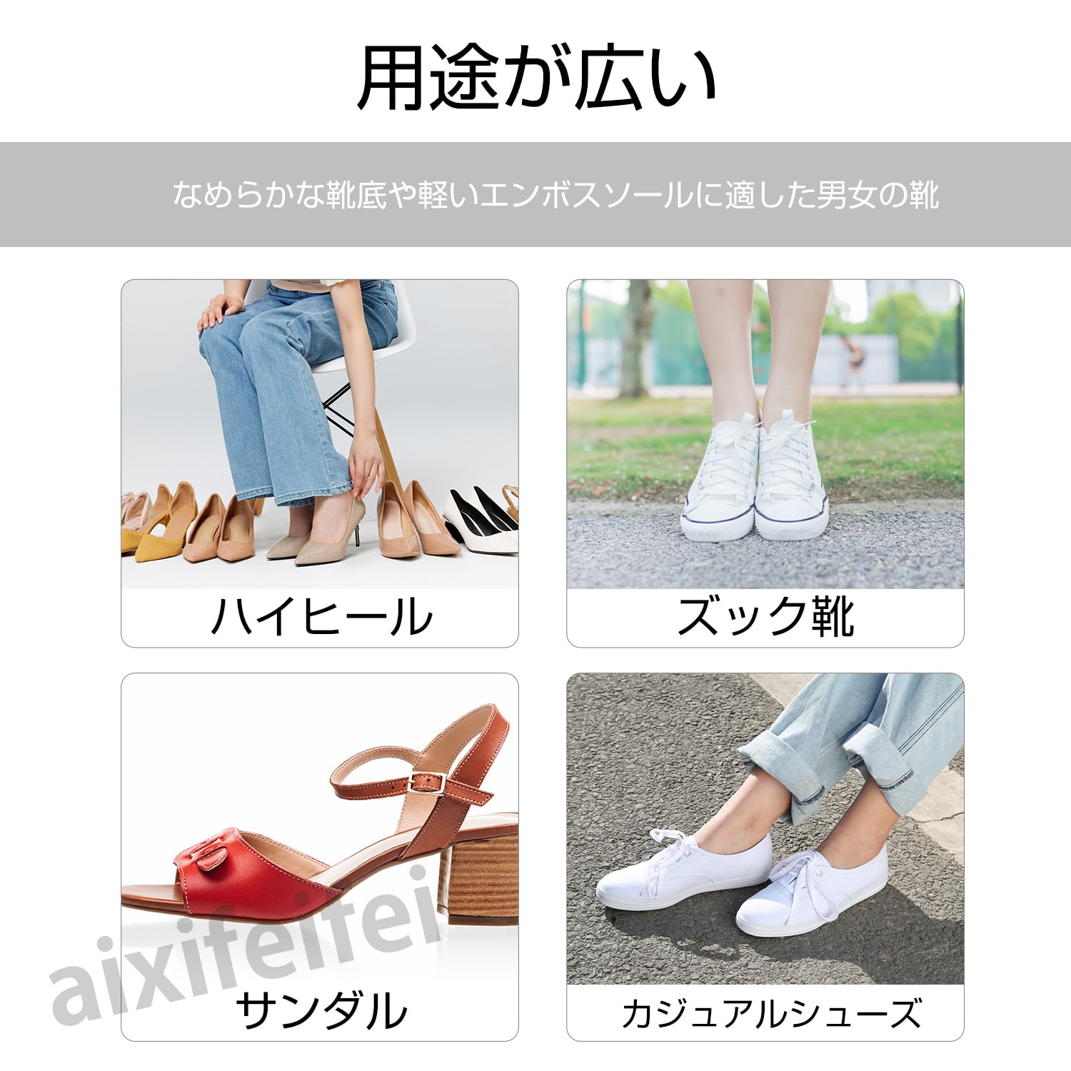 【幅広い靴種に対応】長方形のサイズは自由にカット可能で、ゴム底、革靴、ブーツ、サンダル、キャンバスシューズなど、几乎所有の靴種に適しています。デイリーユースからアウトドアまで、幅広いシーンで活躍します。