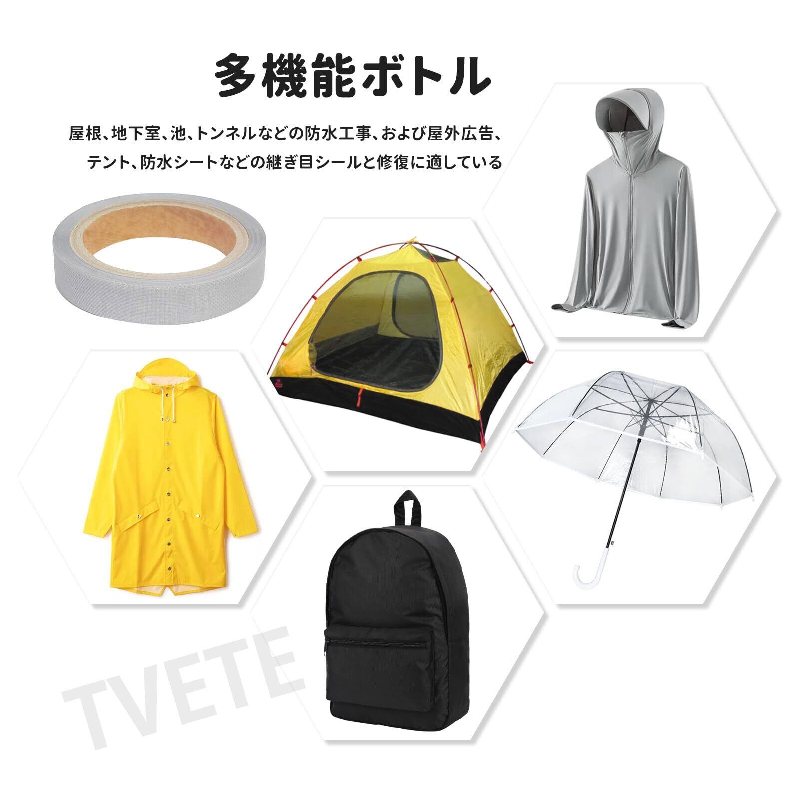 【適用範囲】アウトドアウェア、アサルトウェア、寒冷地用ウェア、スキーウェア、ダウンウェア、ダイビングスーツ、テント、防水靴、車やボートカバーなどです。