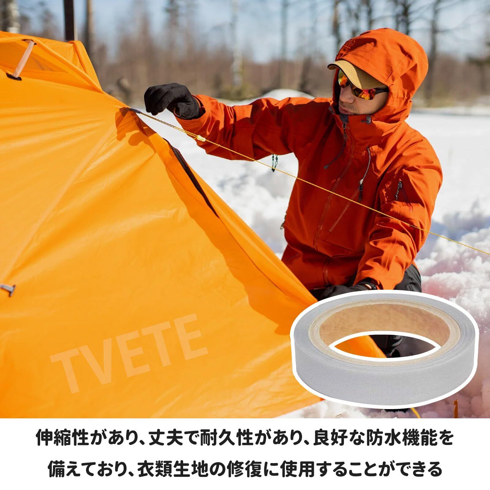 TVETE 3レイヤー適合シームテープ アイロン接着 エラスティックシームテープ 表面微弾力布 テント ザック タープ シート レインウェア 補修 防水対策 0.3mm厚×2cm幅×5m長