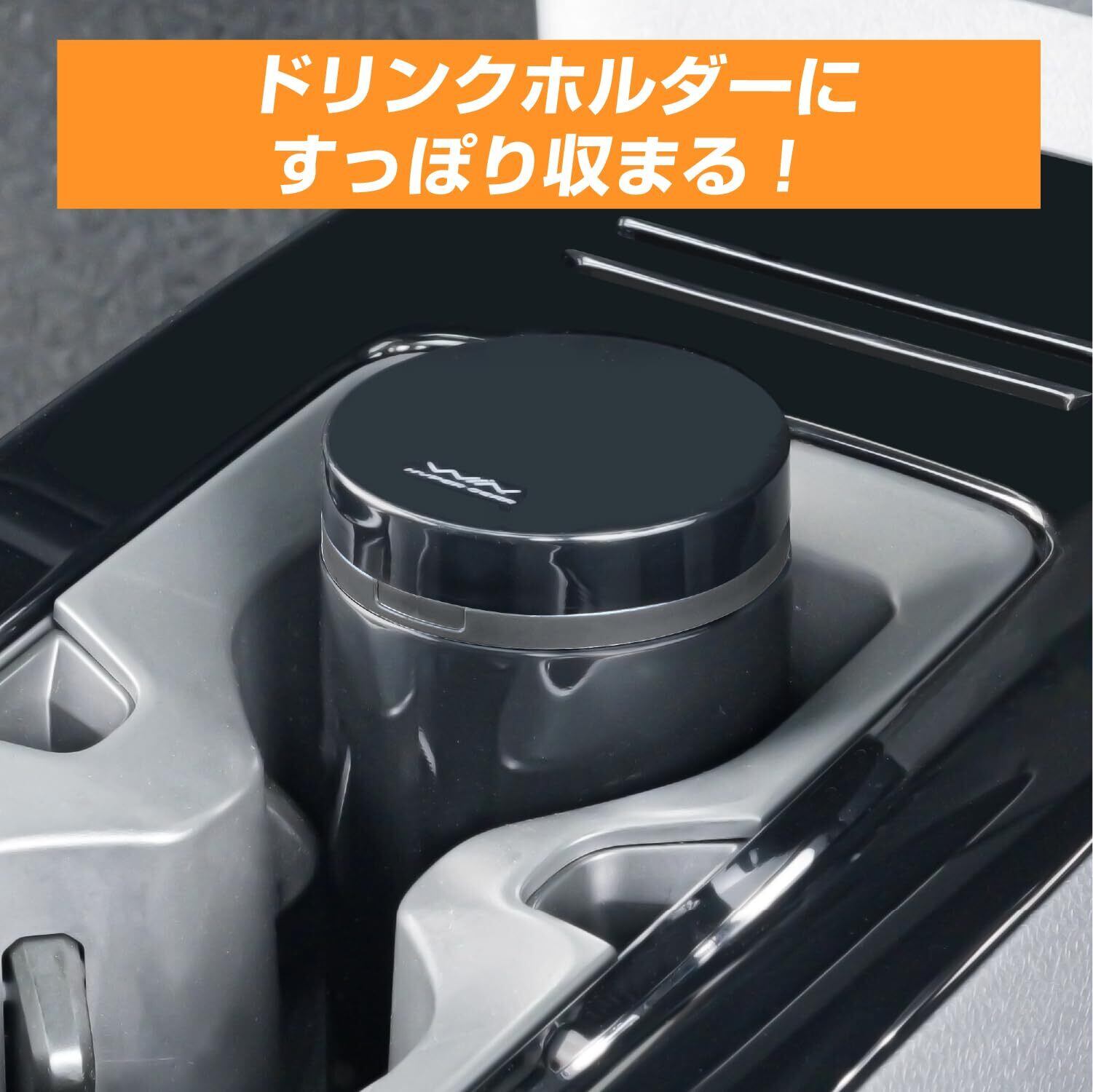 純正や後付けのドリンクホルダーにすっぽり収まる置き型タイプの缶灰皿です。