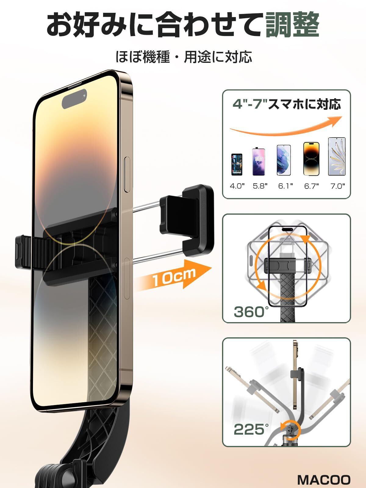 【最高なユーザー体験、多機種対応】自撮り棒のBluetoothはiPhoneとAndroid両方のOSで使用できるで、友達や家族と共有できるので便利です。横幅62mm-100mmのスマホを自撮り棒のホルダーに装着するのが可能、小さい端末でも、大画面の端末でもしっかり固定できます!市場で類似品と模倣品は多いですが、「見た目が同じように感じても、驚くほど性能に差があり、お客様の最高なユーザー体験のために、是非MACOOを見定めてご購入ください。無期限のカスタマーサポートで、万が一製品に関する問題ありましたら、弊店にご連絡頂ければ弊社より早速に解策をご案内します。