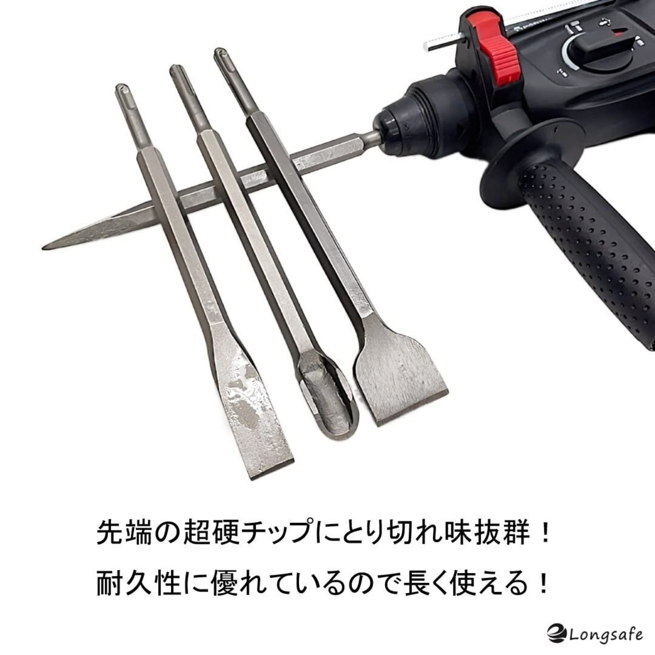 コンクリートやブロックなどを「割り」「削り」「斫り」作業に使用する、SDSプラスシャンク仕様の電動ハンマー用チゼルセットです。