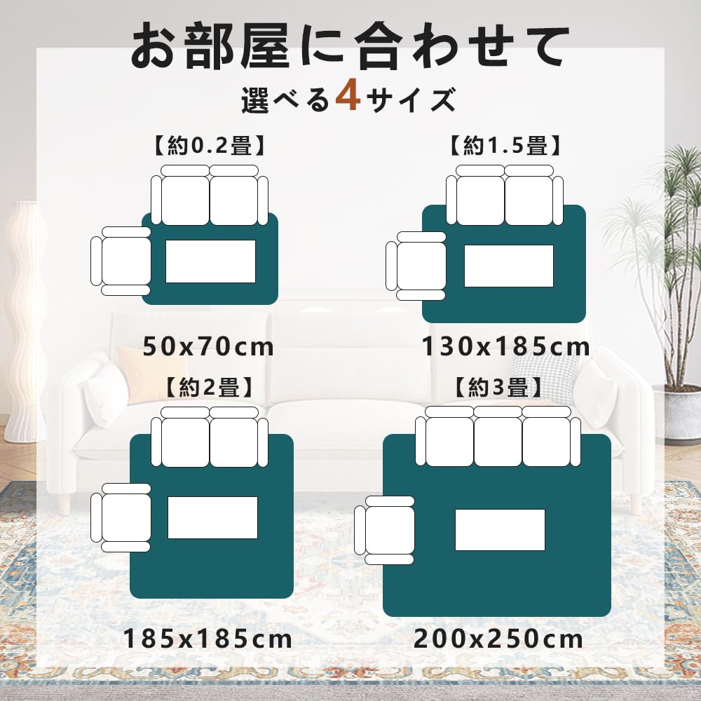【 限定】ペルシャ風 ラグ カーペット 2畳 3畳 花柄 北欧 厚手 オリエンタル柄 ペルシャ絨毯 じゅうたん 抜けない おしゃれ 滑り止め 洗える 床暖房 オールシーズン適用 低反発 防音マット 軽量 ラグマット 防ダニ 長方形 (green, 185*185cm)