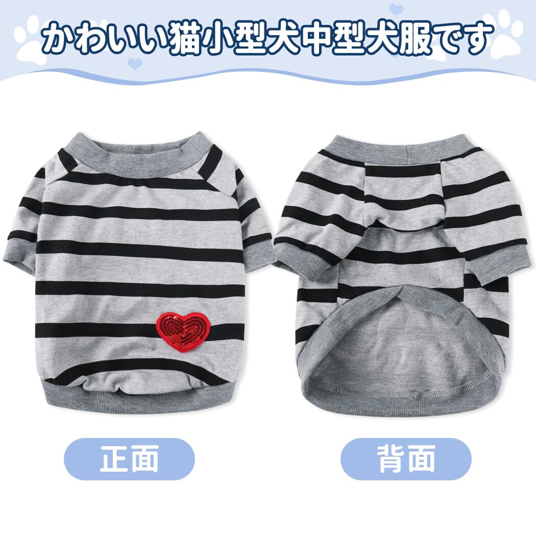 Jimjis 犬服 春夏 犬の服 猫服 半袖 ペット服 Tシャツ 犬抜け毛服 小中型犬服 おしゃれ かわいい ハート柄 洋服 ストライブ お散歩お出かけウェアに 春夏服 柴犬 tシャツ 脱毛保護 グレー