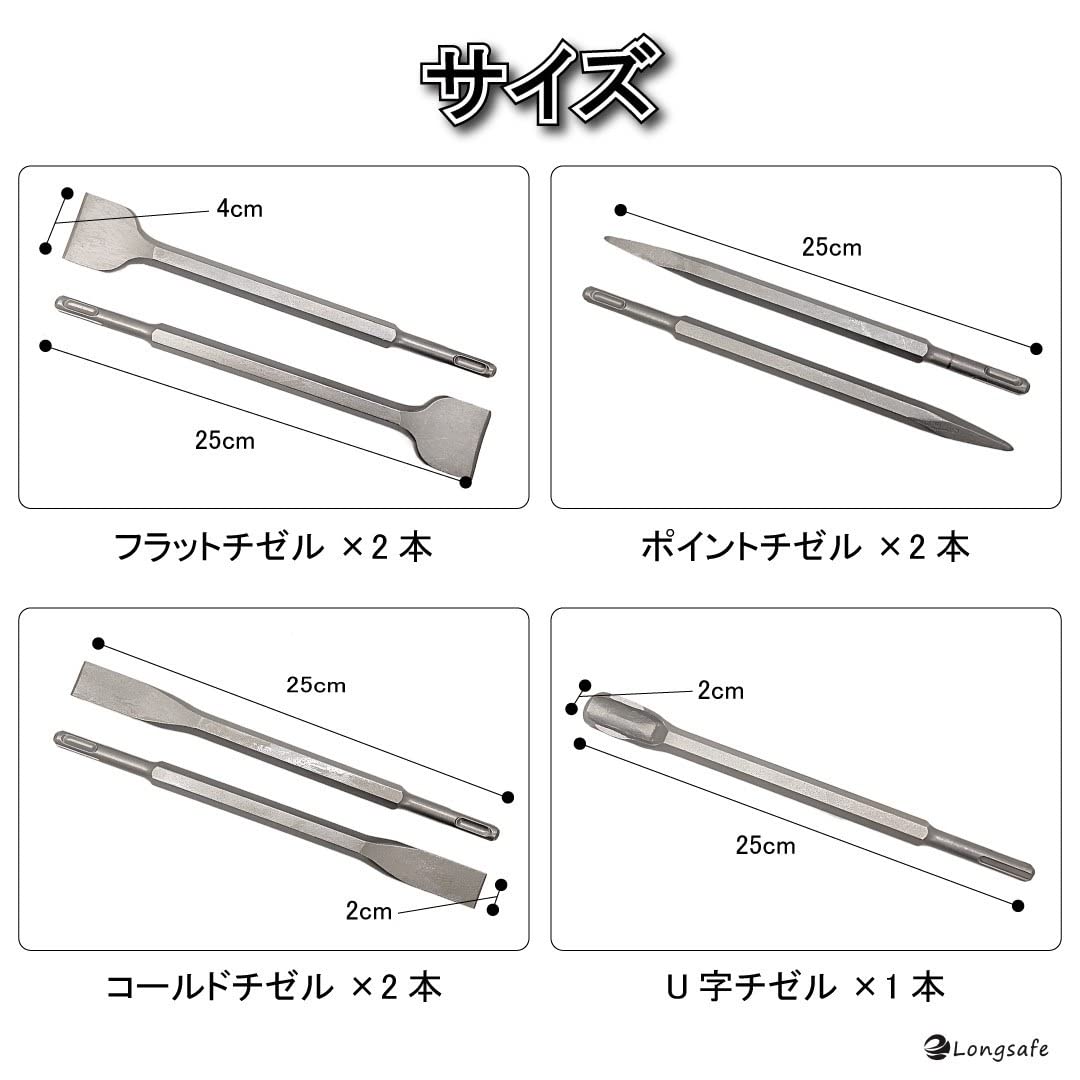 コンクリートやブロックなどを「割り」「削り」「斫り」作業に使用する、SDSプラスシャンク仕様の電動ハンマー用チゼルセットです。