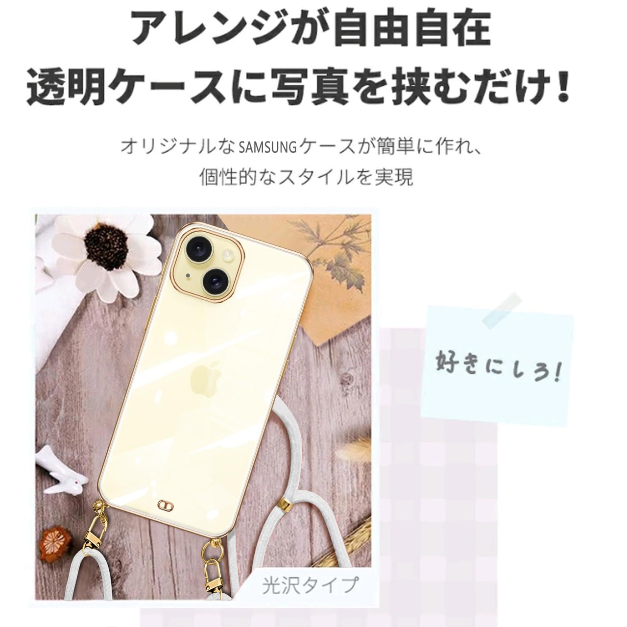 iPhone15 用 ケース ショルダー クリア いphone15 スマホケース カバー 肩掛け 首掛け 斜めかけケース 可愛い かわいい 韓国 透明 TPU 薄型 耐衝撃 シリコン アイフォン15(ホワイト)