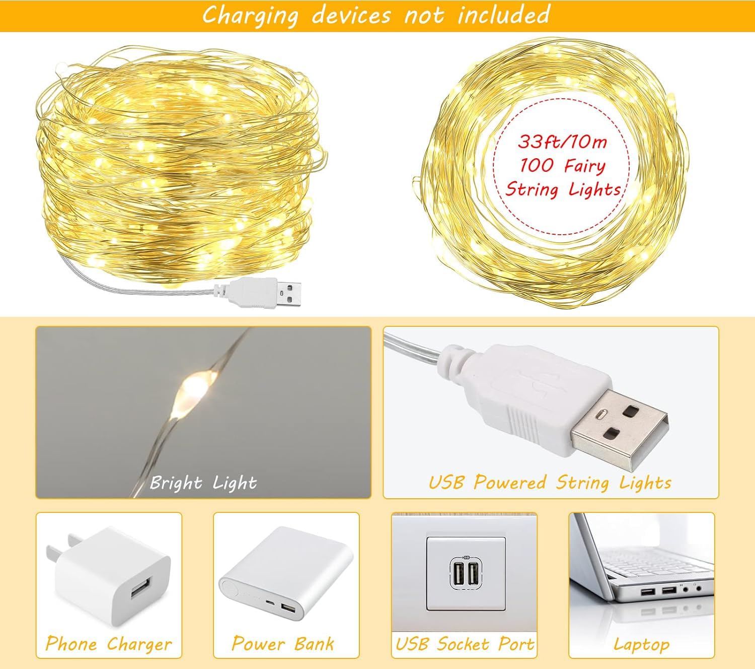 【使いやすい】DC 5V電源に接続するだけでガーランドライトが点灯します。 USB ケーブルは 5V 充電器、パワーバンク、PC、ラップトップで簡単に使用でき、使用方法はとても簡単で、壁とか棚とか、ツリーなどのところに掛け、デコレーションとしてすごく便利です。