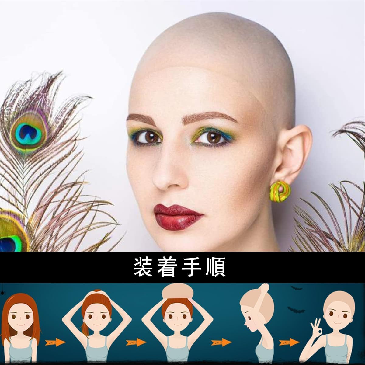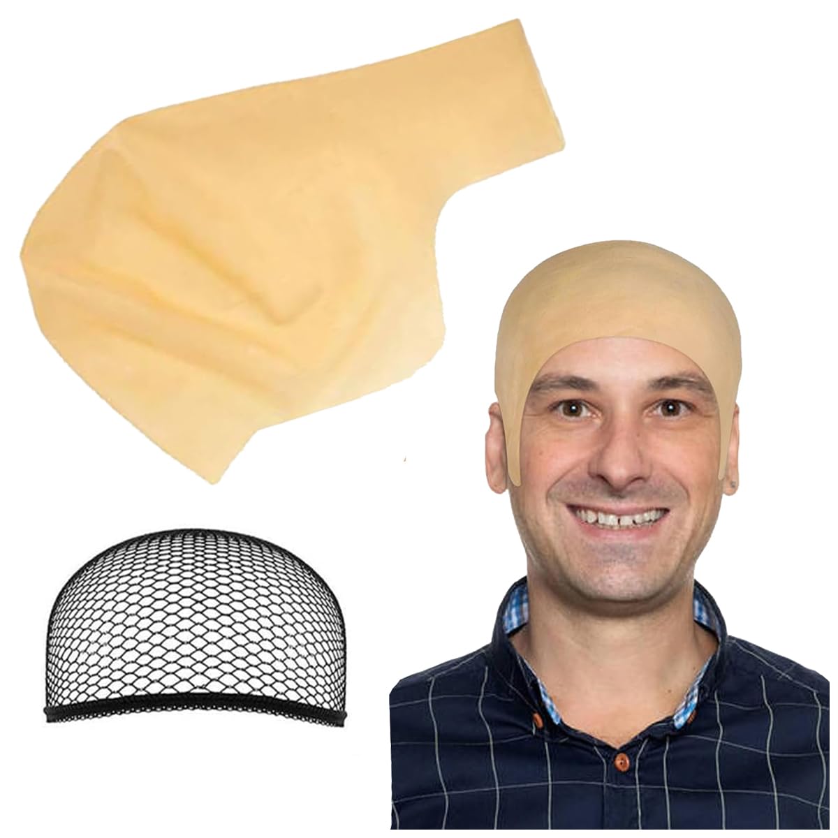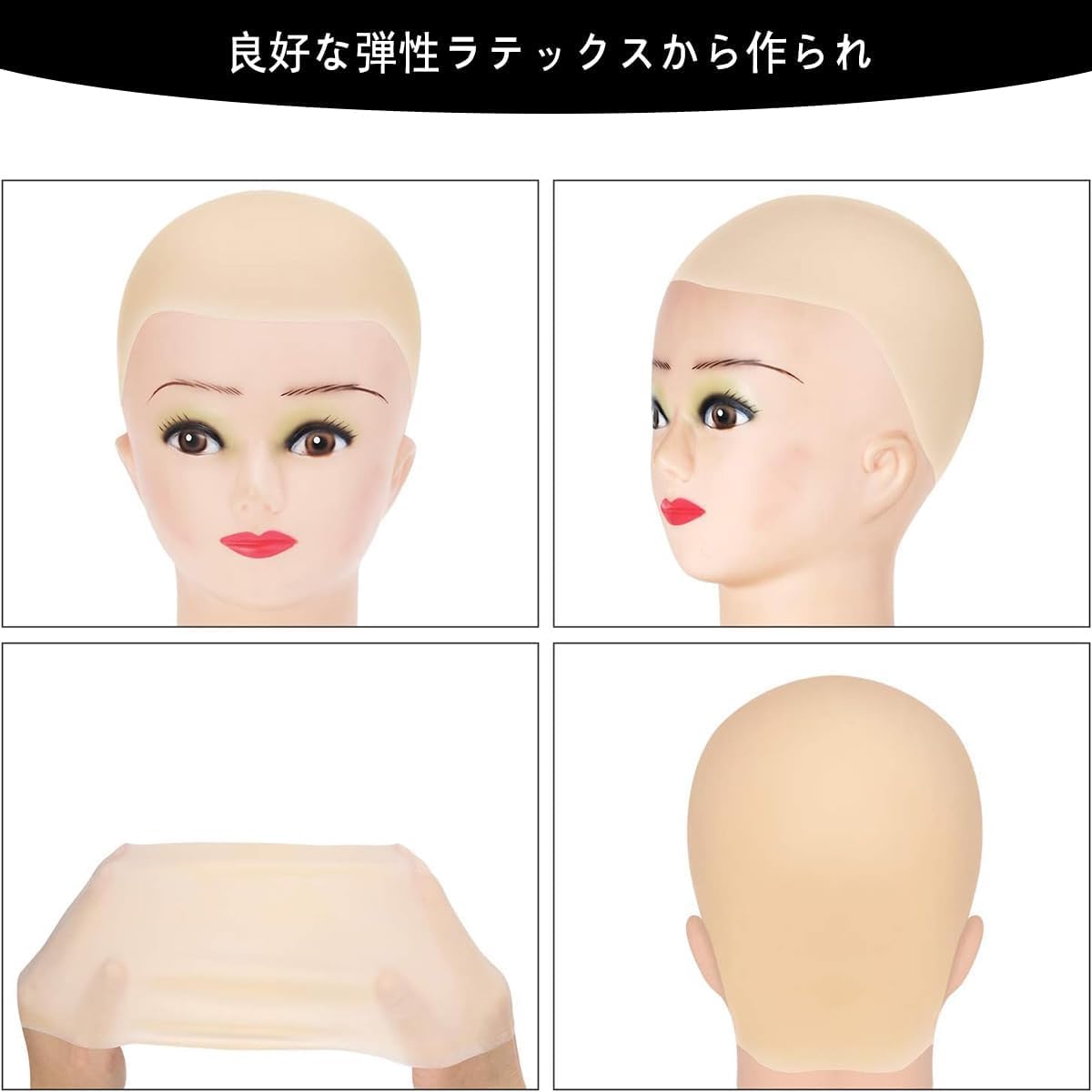 [WISHOW] 2点セット禿頭 坊主頭 スキンヘッド+ウィッグネット禿げ かつら ハゲ頭 ハゲ カツラ スキンヘッド ウィッグ 被り物 はげづら コスプレ ハロウィーン パーティー 変装 小道具 ( 肌色)
