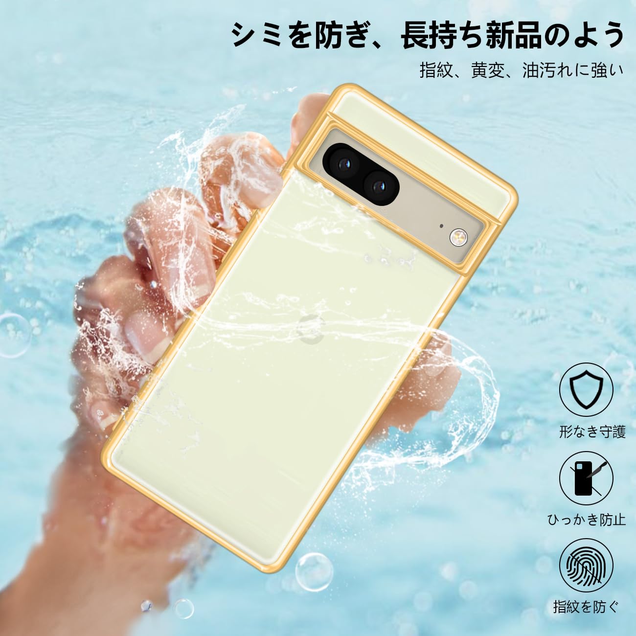 【特価セール】Google pixel 7 ケース クリア メッキ加工 耐衝撃 薄型 カバー グーグル ピクセル 7 透明な背面 ケース 米軍MIL規格 SGS認証 TPU 透明な背面 スマホケース ?国 人気 ランキング おしゃれ 衝撃吸収 ソフトケース 指紋防止 滑り止め 黄変防止 ストラップホール付き カメラ保護 携帯ケース pixel 7 case (ゴールド)