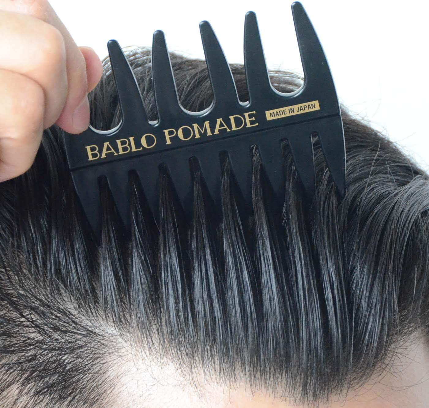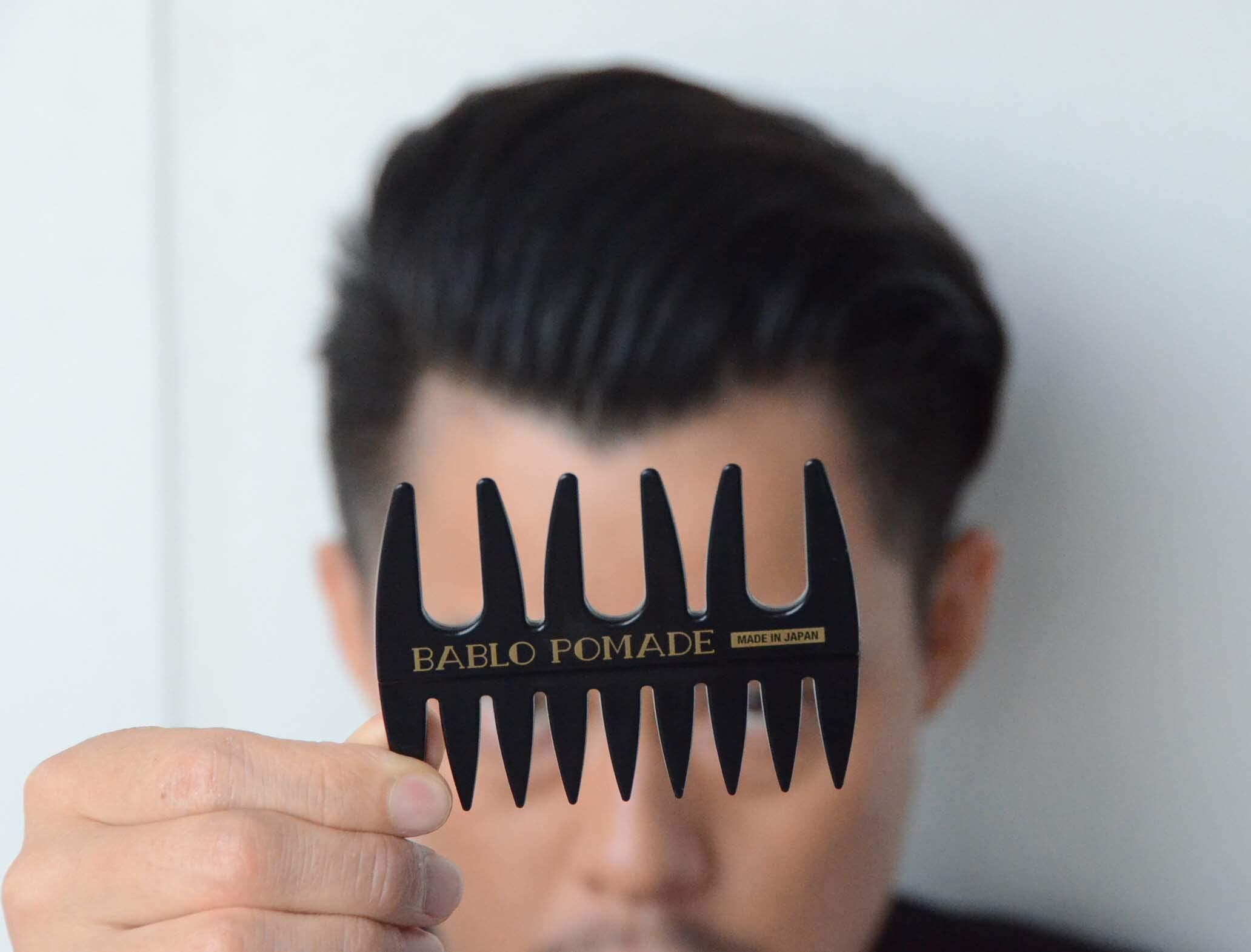 【国産ポマードブランド】MADE IN JAPANのポマードブランド“BABLO POMADE”のメッシュコーム。ポマードでのスタイリングのお供として使えるようクラシカルなデザインに仕上げました。