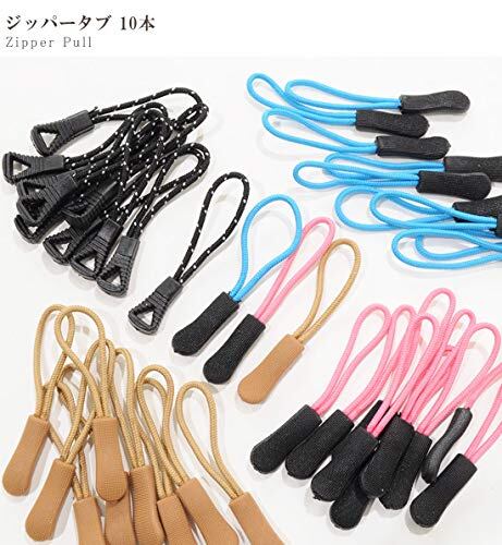 MYmama ジッパータブ 同色 10本 アウトドア ウィンタースポーツ ジャンパー リュック (ブラック) 12826-4