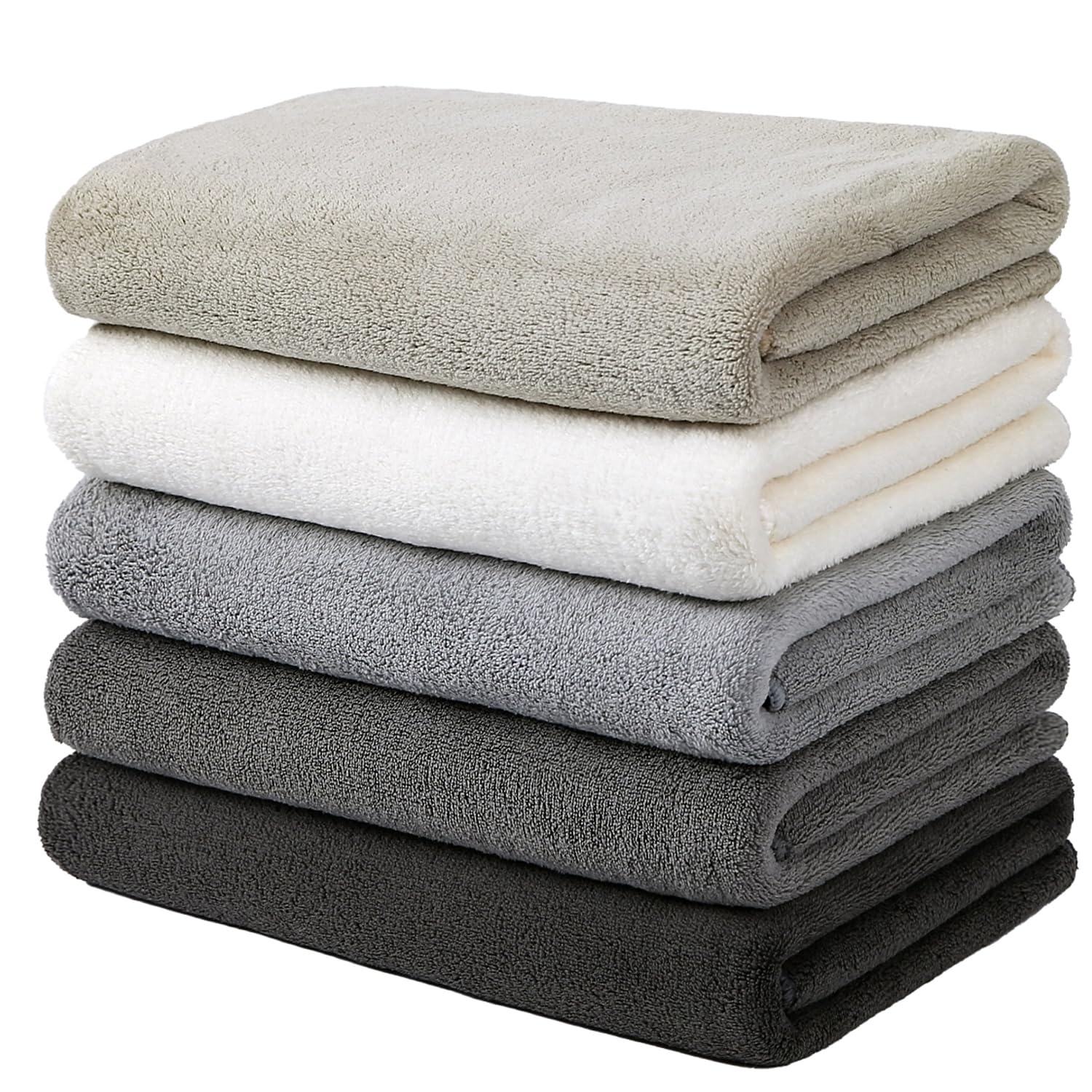 Oseamaid バスタオル 大判 5色5 枚セット マイクロファイバー タオル 吸水速乾抗菌防臭(白い グレー ライトグレー ミディアムグレー ダークグレー)