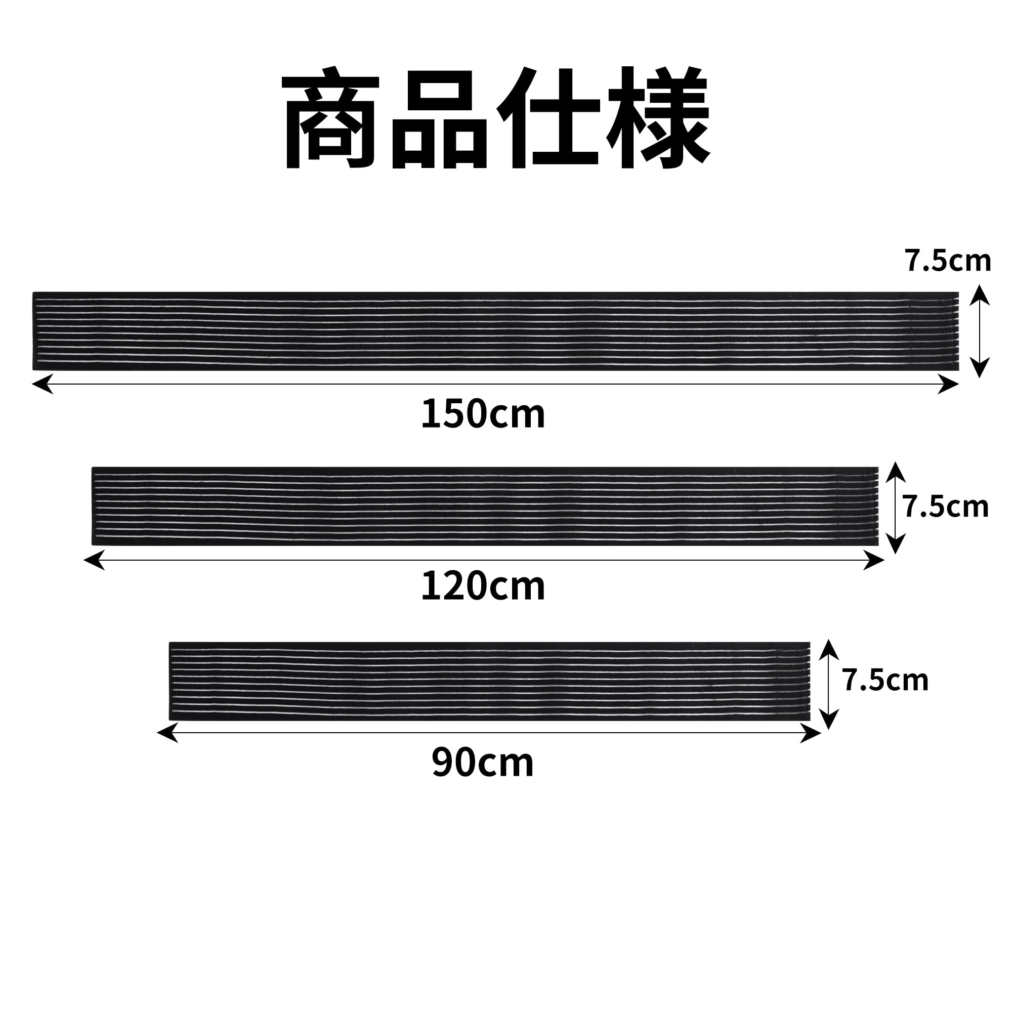 商品仕様:長さ90㎝,幅さ7.5㎝。色:黑色。入れ数:2枚入り。素材:ゴムバンド。