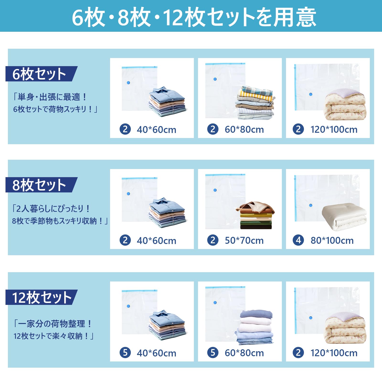 【特価セール】Yurion 布団圧縮袋 【6枚組/旅行に】 掃除機不要 衣類圧縮袋 コードレス電動ポンプ付き 120×100cm×2枚/60×80cm ×2枚/40×60cm×2枚 真空 布団 衣類 毛布 洋服 ふとん 特大サイズ 真空収納袋 収納圧縮袋 電動エアポンプ 高密封性 防湿 防塵 防臭 防カビ 圧縮パック ダニ対策 収納/引越し/衣替え/出張/旅行用