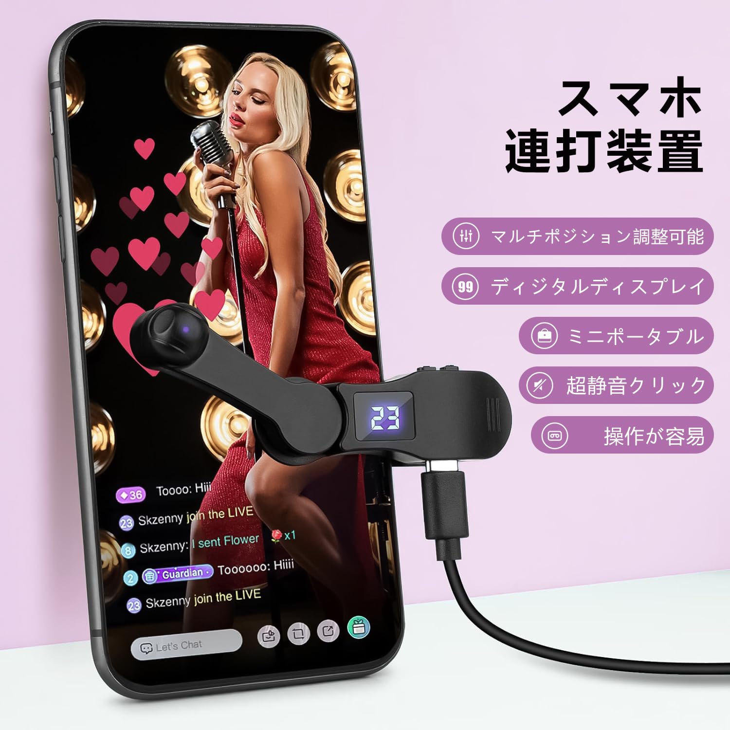 【特価商品】自動タップ機 スマホ連打装置 いいね 連打機 tiktok タップ機 オートクリッカー 無音 1-99のクリック周波数レンジ USB給電式 iphone 自動 タップ ランダム周波数モードのサポート 携帯 自動タップ 日本語説明書 【1年サービスパック(修理料金全額サポート)