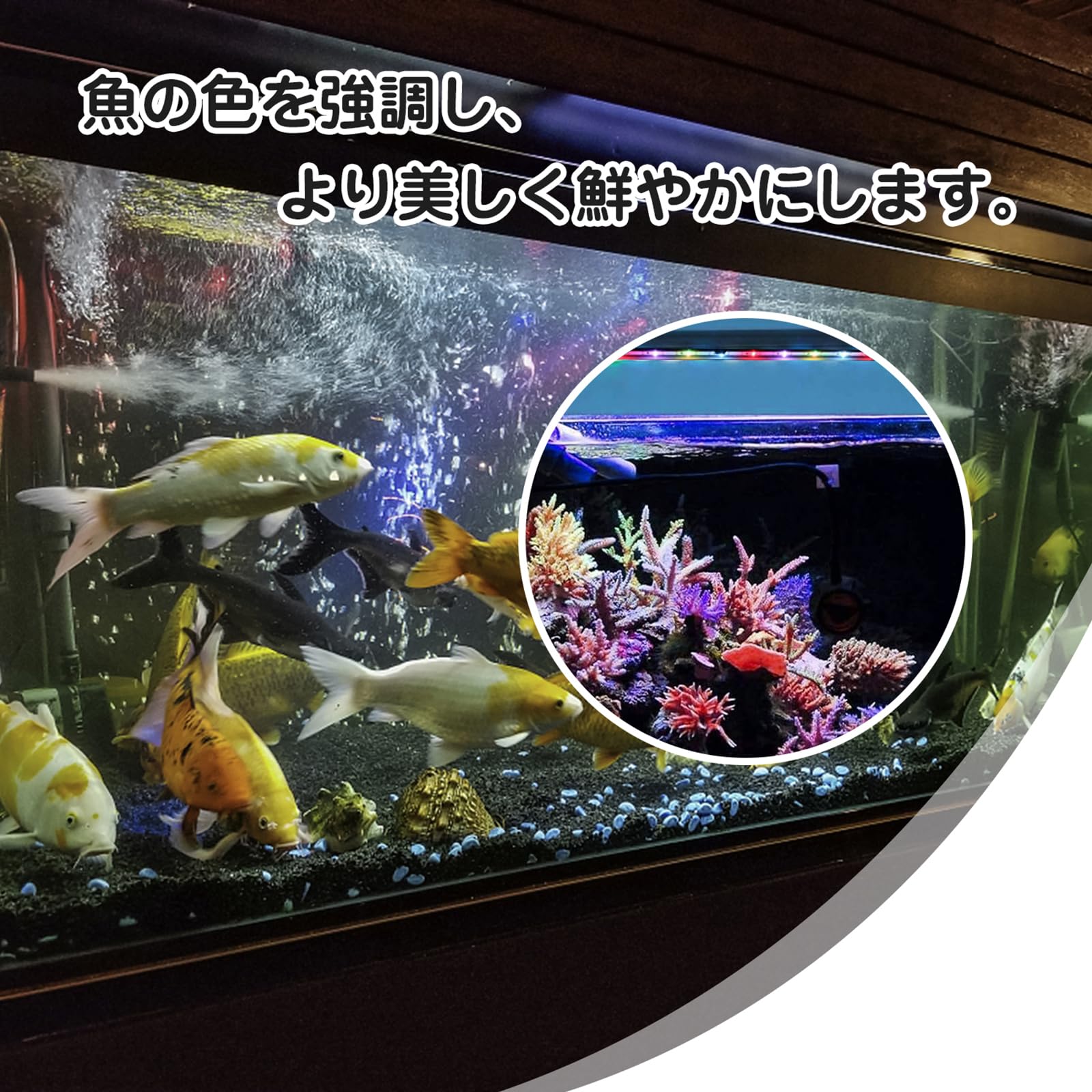 ?カラフルなイルミネーション: 赤、青、ピンク、緑の4色のライトビーズが鮮やかに色づき、カラフルな照明効果を生み出します。美しく魅力的な水中世界を演出します。活気に満ちた水族館に理想的な明るさを提供します。光は水草の成長を促進し、魚の色を強調し、より美しく生き生きとさせます。