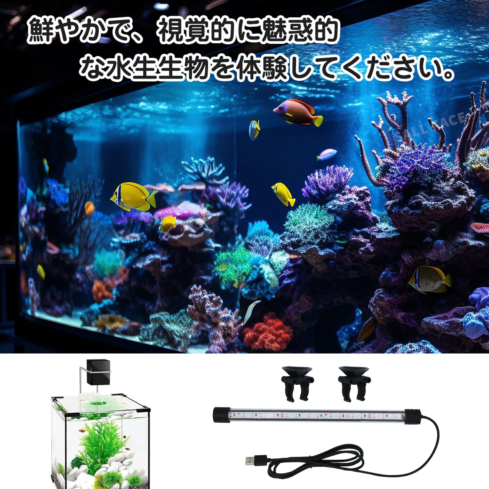 ?強化された視覚体験: 高輝度とユニークな色のランプビーズを誇る 魚水族館タンクライトでご自宅の水族館をレベルアップし、水中の友達が繁栄できるように見事な虹色の雰囲気を作り出します。これまでにない鮮やかで視覚的に魅力的な水生生物を体験してください。