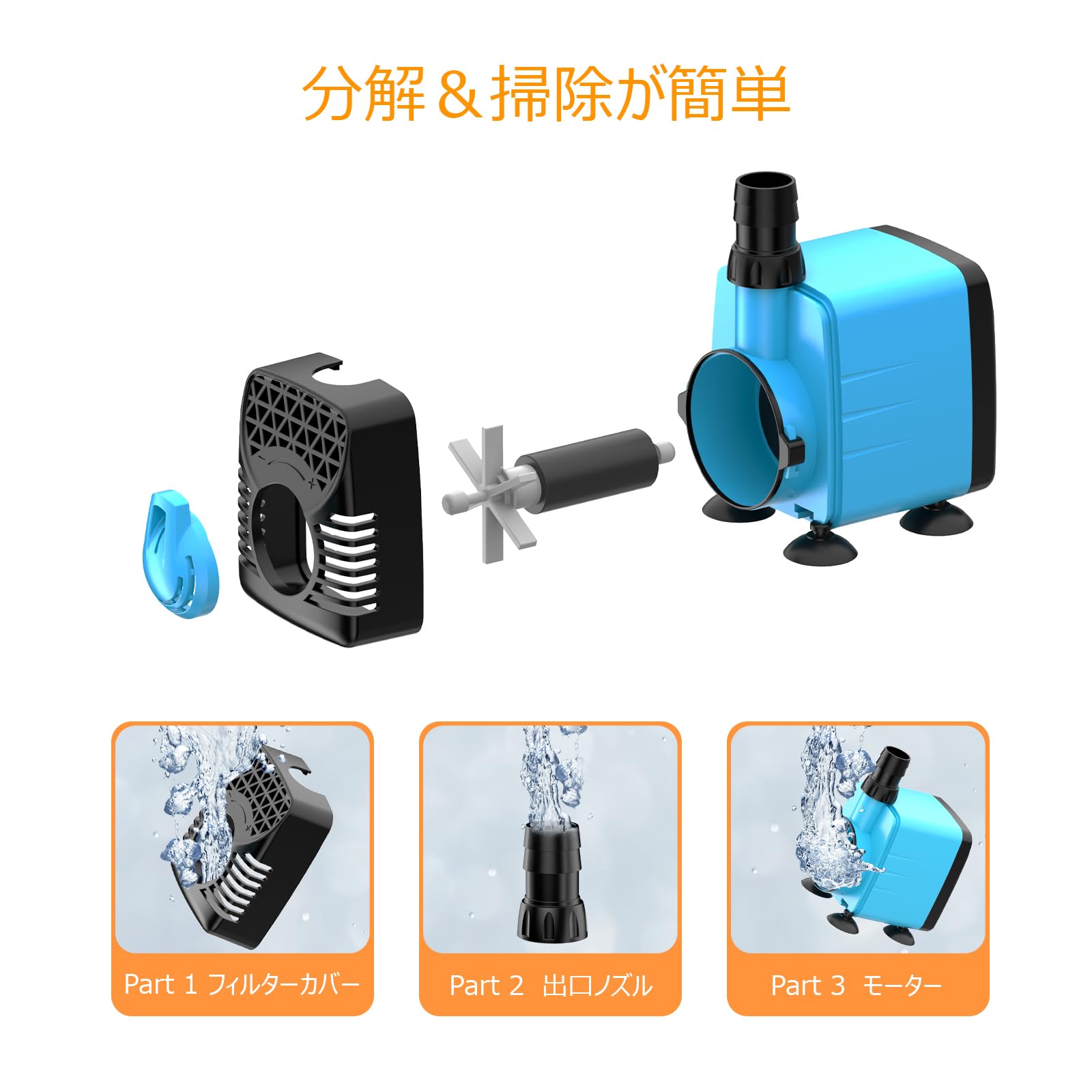 NFESOLAR 水中ポンプ 吐出量800L/H 最大揚程1.5M ミニポンプ 給水・排水ポンプ 潜水インストール 水族館給水 水槽水循環 静音設計 説明書付き